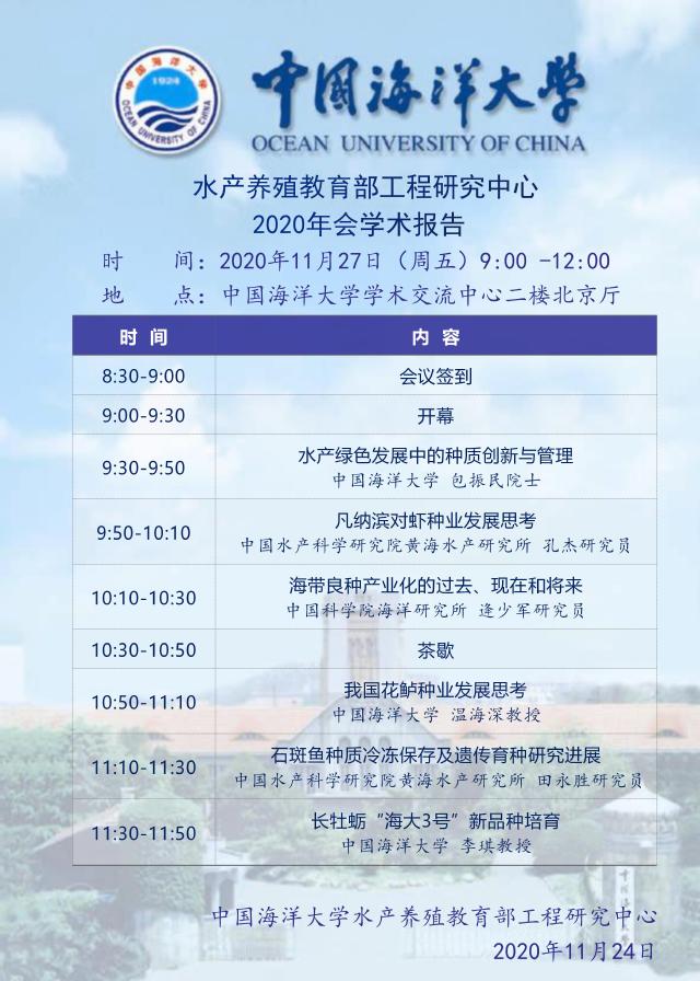 【学术报告】水产养殖教育部工程研究中心2020年会学术报告