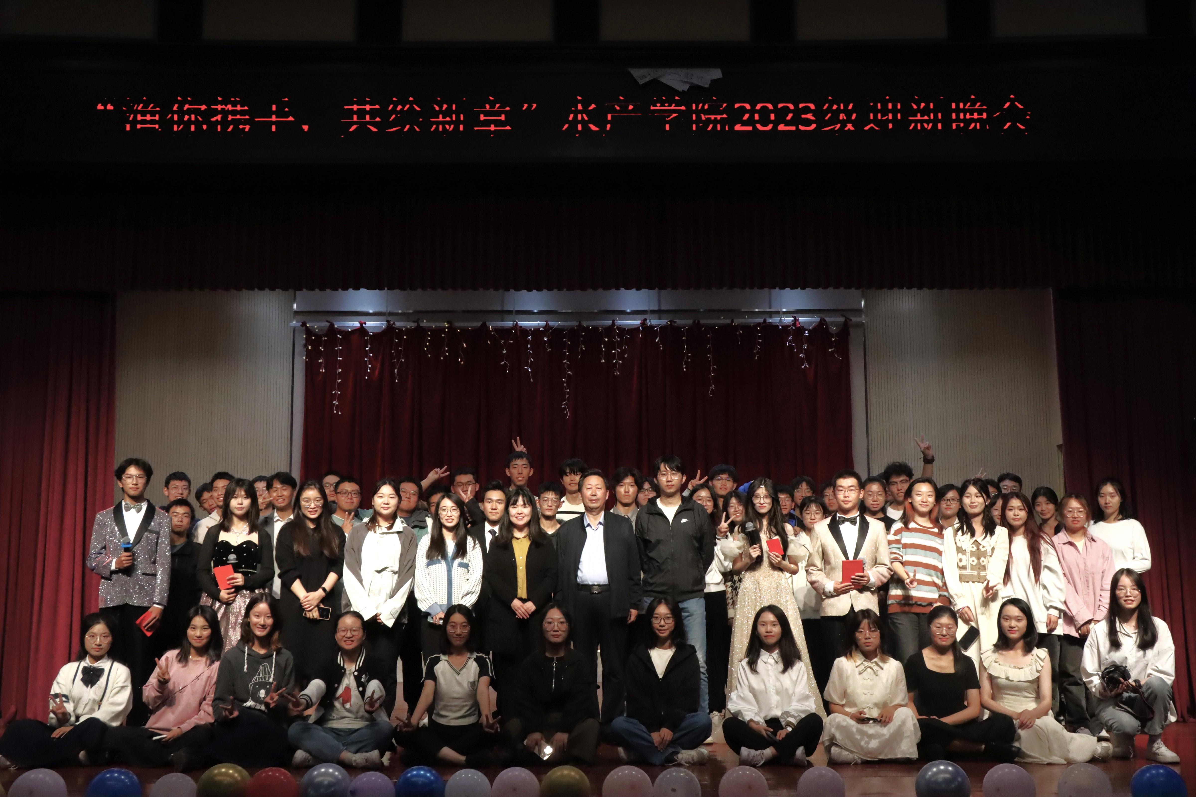 1019日晚,由学院团委主办、学院学生会承办的“渔你携手,共绘新章”2023级迎新晚会在鱼山校区六二礼堂成功举办。到场嘉宾有学院副院长温海深、机关党支部书记赵炜、团委副书记王世晨、2023级班主任杜建龙、杨雨佳,辅导员刘鹏、范静蕾、申雅雯和韩旭。