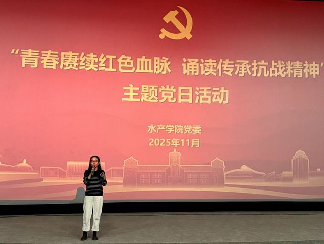 为深入开展爱国主义教育,弘扬伟大抗战精神,11月20日,水产学院党委开展“青春赓续红色血脉·诵读传承抗战精神”主题党日活动。组织入党积极分子、新发展党员及师生党员共130余人,通过“沉浸观影+情景诵读+党课互动+真情感悟”多元联动,打造立体化、沉浸式的红色铸魂思政课,引导师生深切缅怀革命先烈,赓续红色血脉,进一步夯实理想信念根基,激发爱党爱国的深厚情感与奋进力量。