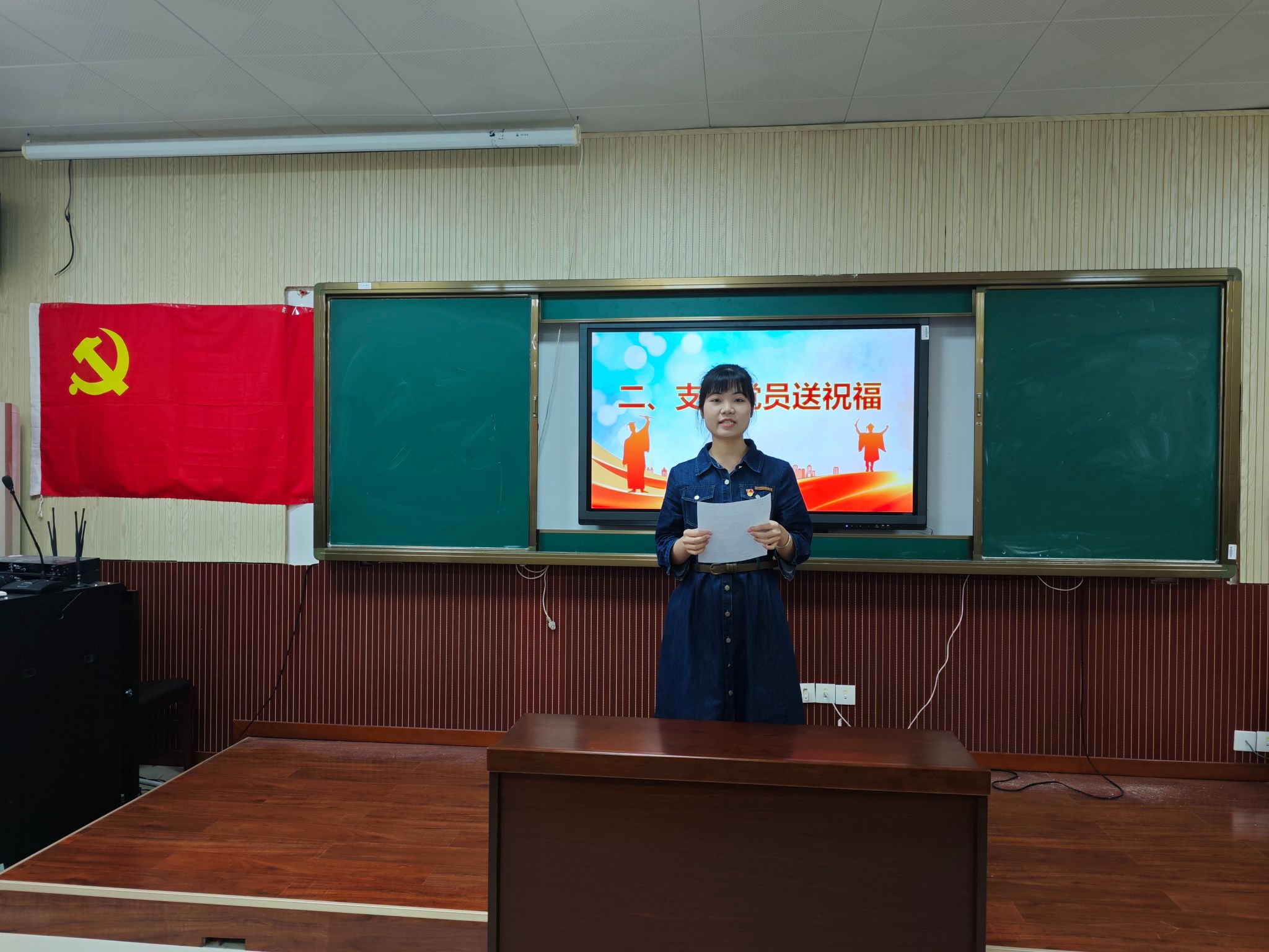 会议伊始,支部毕业生党员代表李芳、刘敏怡、刘玥君等3名同学敞开心扉,畅所欲言,表达了对支部两年来用心栽培的感谢,并鼓励党员们勇于探索、敢于挑战,用奋斗去成就精彩的人生。随后,支部非毕业班党员卢旺喜、黄秋霞、赵珊珊等3名同学为毕业生党员们送上真挚的祝福,表达分别的不舍之情。接着,支部书记覃诗雅为毕业生党员发放纪念礼物,激励毕业生党员们永葆入党初心,牢记党员身份,肩负起新时代的重任,在新的人生道路也要充分发挥中国共产党员的先锋模范作用。