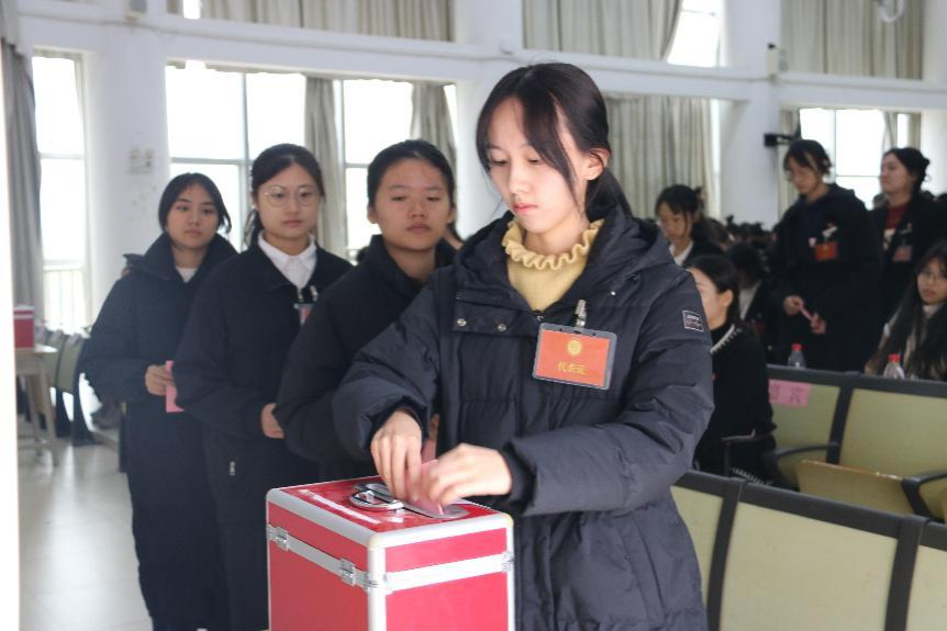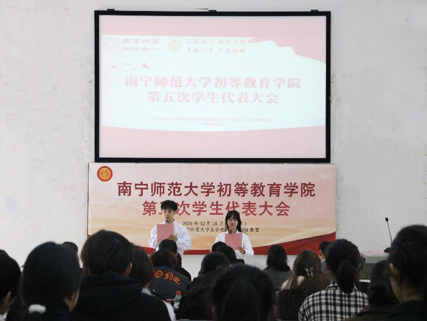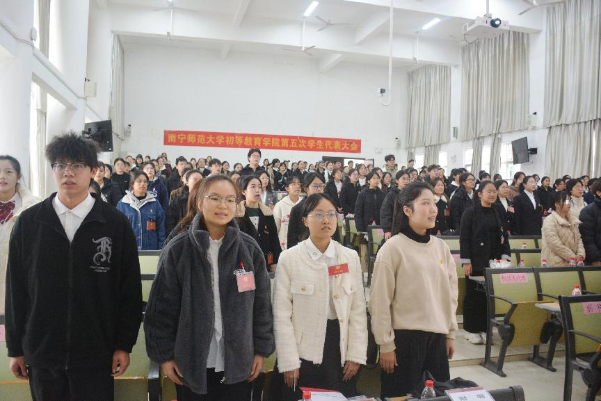 第五届学生委员会主席团成员。随后,新当选主席团成员莫莉婷宣读倡议书,向同学们发起以饱满的热情、坚定的信念、务实的作风,共同书写新篇章的号召。在全体与会人员合唱校歌中,大会顺利闭幕。