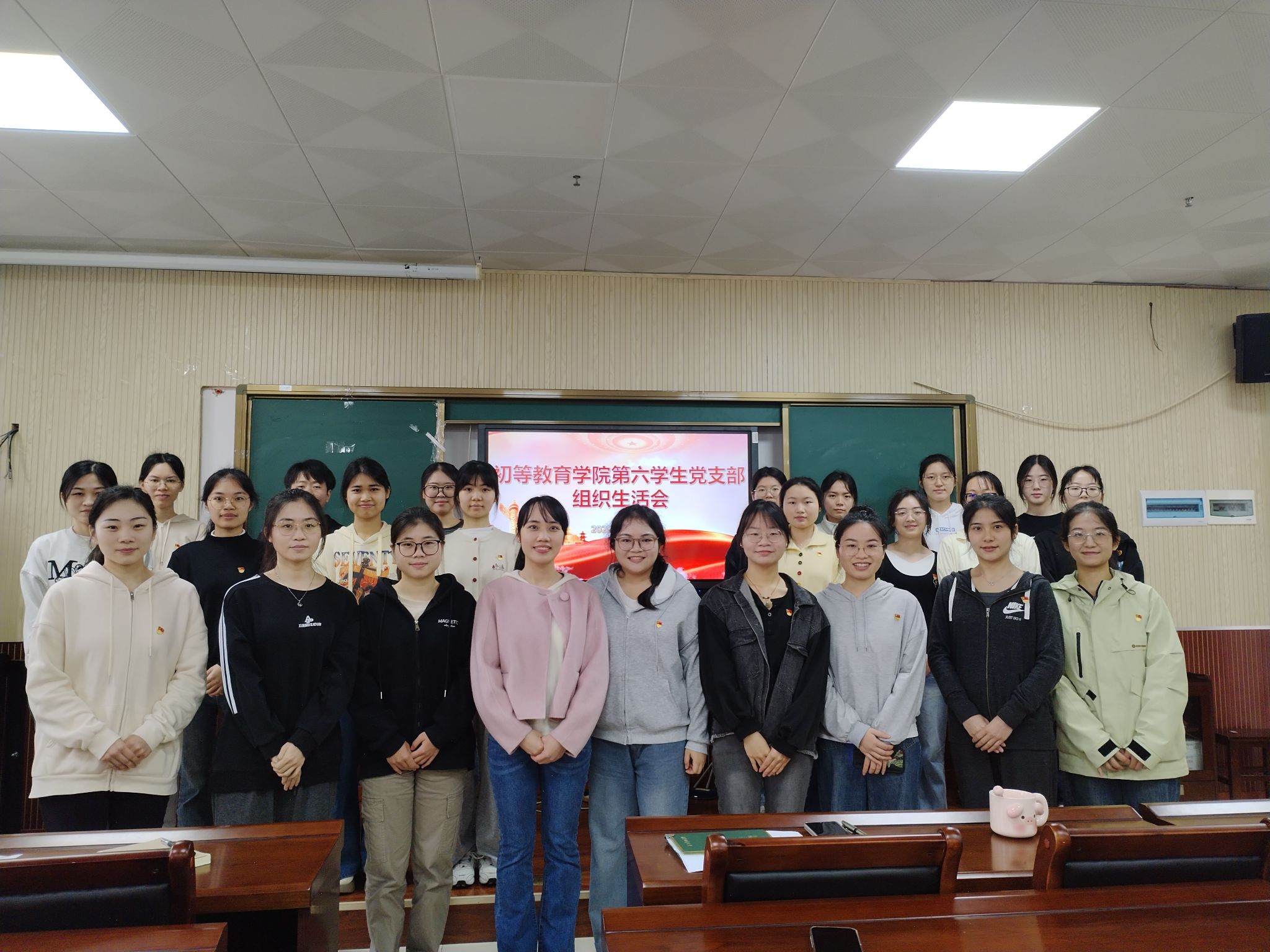 第六学生党支部在理综楼803会议室召开2024年度组织生活会暨民主评议党员大会。学院党委群工委员谢廷建到会指导,支部书记覃诗雅主持会议,支部全体党员参加。