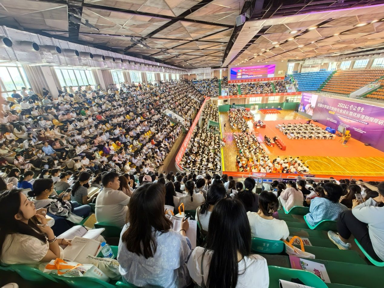 师生组织前往广西体育馆参加“‘前沿课堂’全国小学语文教师专业成长暨优质课例观摩研训活动”。学院语文教研室主任、研究生导师李丹副教授带队,21级、22级陶行知实验班学生和23级小学教育专业语文方向研究生参加活动。
