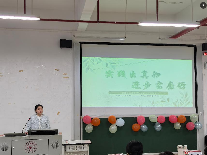 会议伊始,刘飖主任总结了为期12周的实习成果,勉励大家回校后认真总结经验,为正式走上工作岗位不断完善提高。随后,来自8个县市区的实习小组代表依次登台发言。在发言中,大家纷纷分享了实习期间的收获与感悟,他们一致表示,在实习过程中,自己的教学技能得到了有效锻炼,团队协作能力也得到了显著提升。同时,他们也表达了自己扎根教育事业、努力探索教育之路的坚定决心。最后,梁宇院长作总结发言,她肯定同学们在实习中展现出了扎实的专业基础、积极的学习态度和较强的适应能力,强调实践教学对于培养多能一专卓越小学全科教师的重要性,希望同学们持续提升自己各方面的能力,塑造专业素养,在教育的舞台上绽放光彩,践行自己的教育理想。