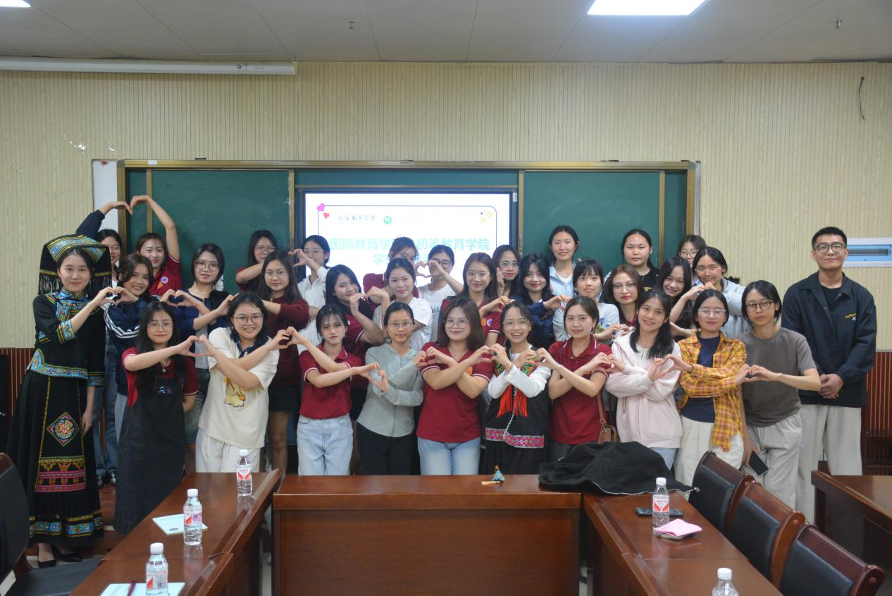 五合校区开展中外学生交流座谈。国际交流合作处副处长、国际教育学院副院长陈传忠,初等教育学院团委书记李欣、辅导员李露露、韦文平和70余名中外学生代表参加本次活动。