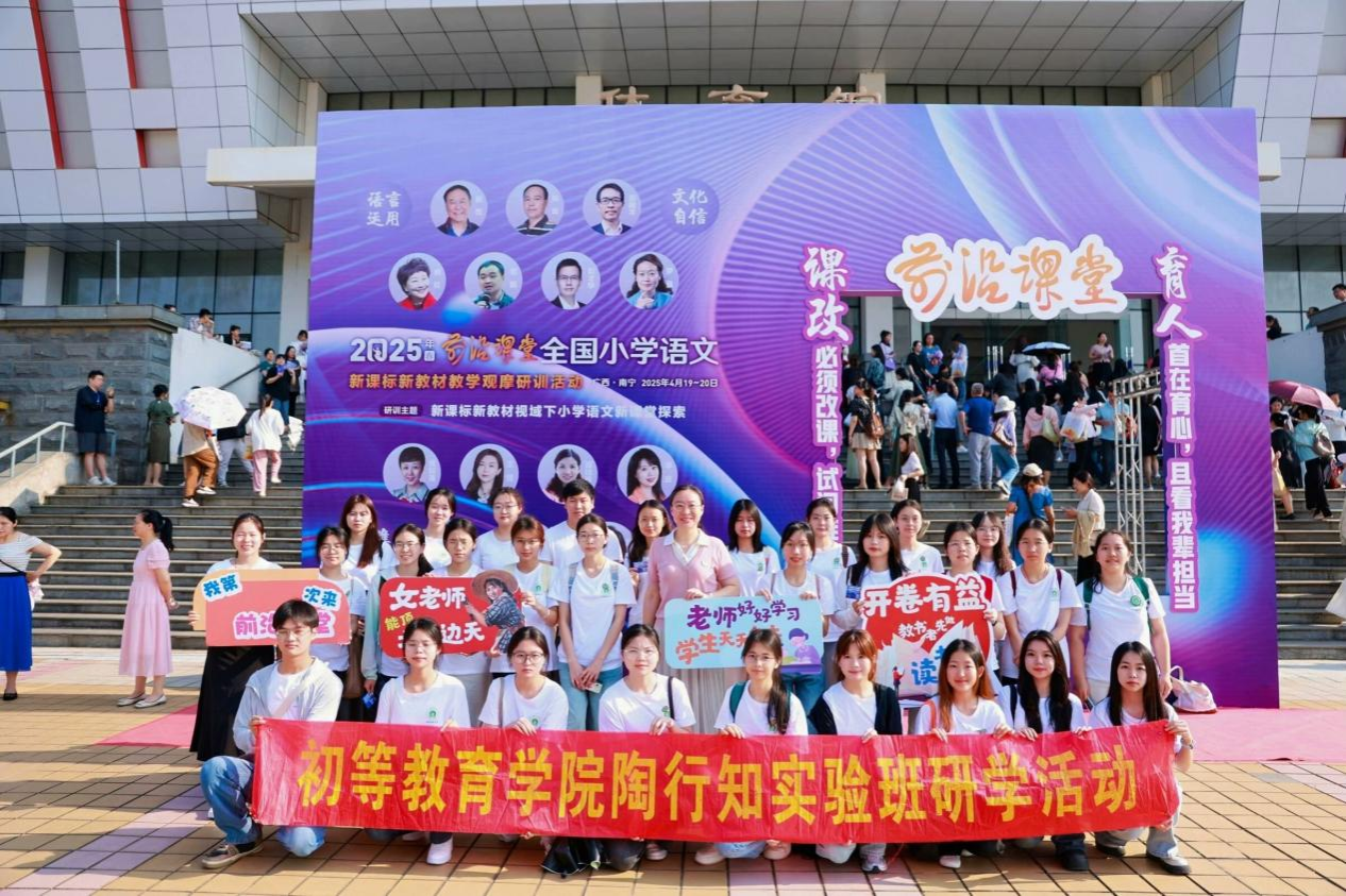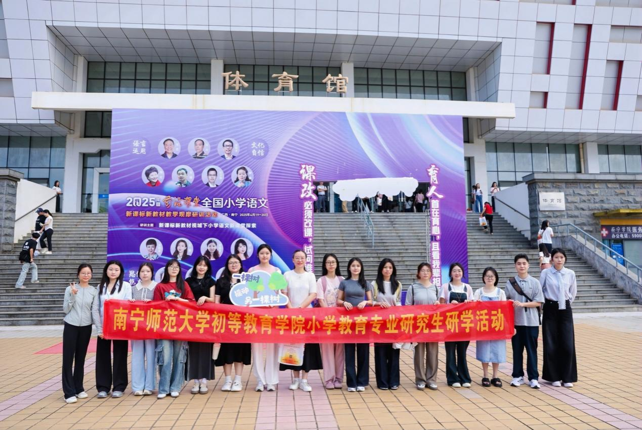 2022-2023级陶班和2024级研究生班语文方向学生,在李丹老师的带领下前往南宁学院体育馆参加2025年“前沿课堂”全国小学语文新课标新教材教学观摩研训活动。