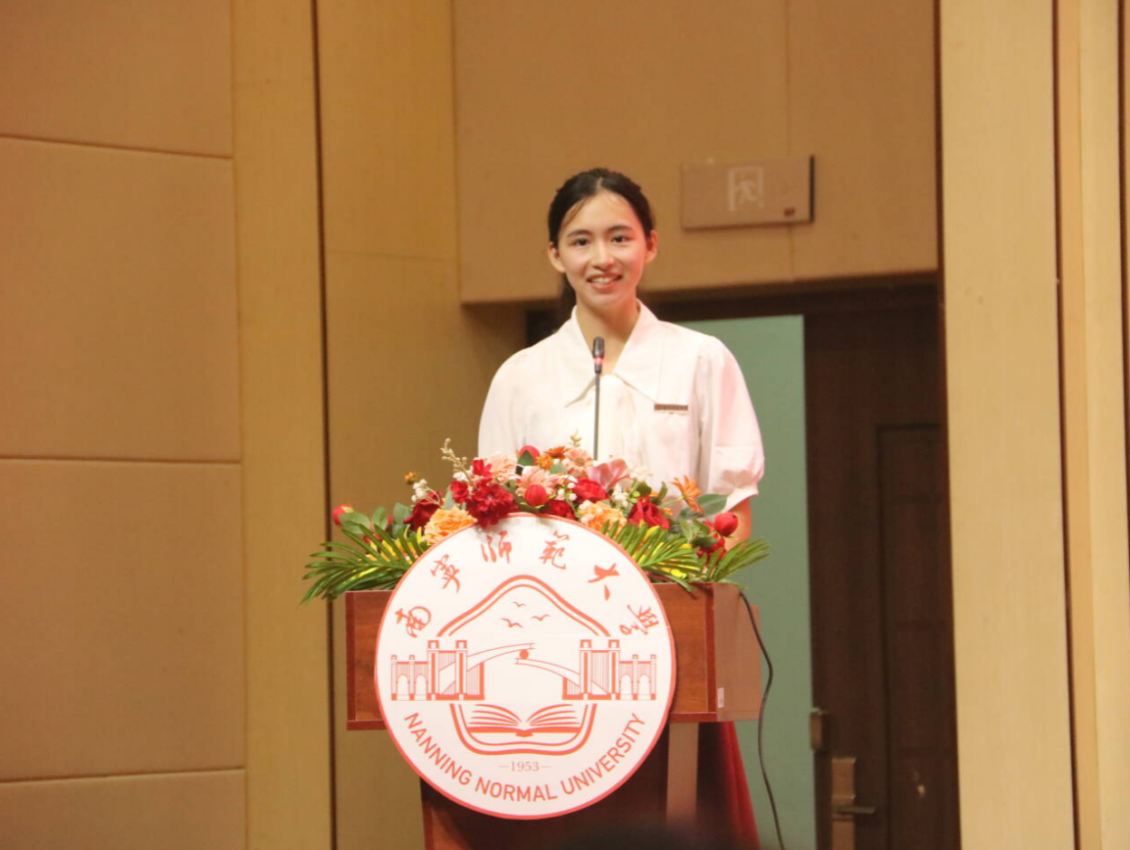 接着,教师代表罗聿言博士分享个人过往、职业经历与成就,介绍学院优势,勉励新生惜当下、规划未来,还寄语新生“愿君一夏长林间,他日将来做栋梁”。高年级学生代表2023级陶班廖元群分享自己的成长收获,为新生送上祝福。本科新生代表2025级本科1班兰昱霖、研究生新生代表2025级研究生赖静怡分别发言,表达了对大学生活的憧憬与奋进决心。