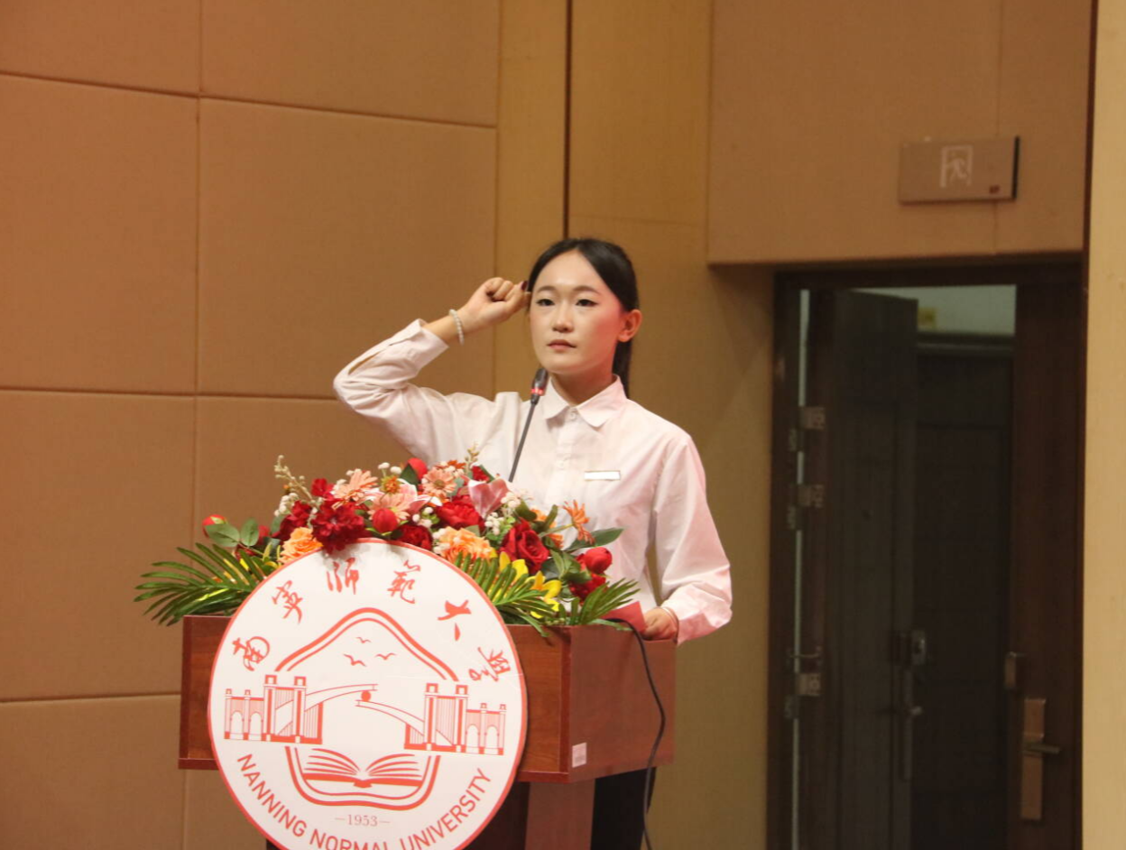 随后,2025级全科1班林伊带领全体新生进行小学教育专业师范生入学宣誓。最后,典礼在校歌声中顺利落幕。