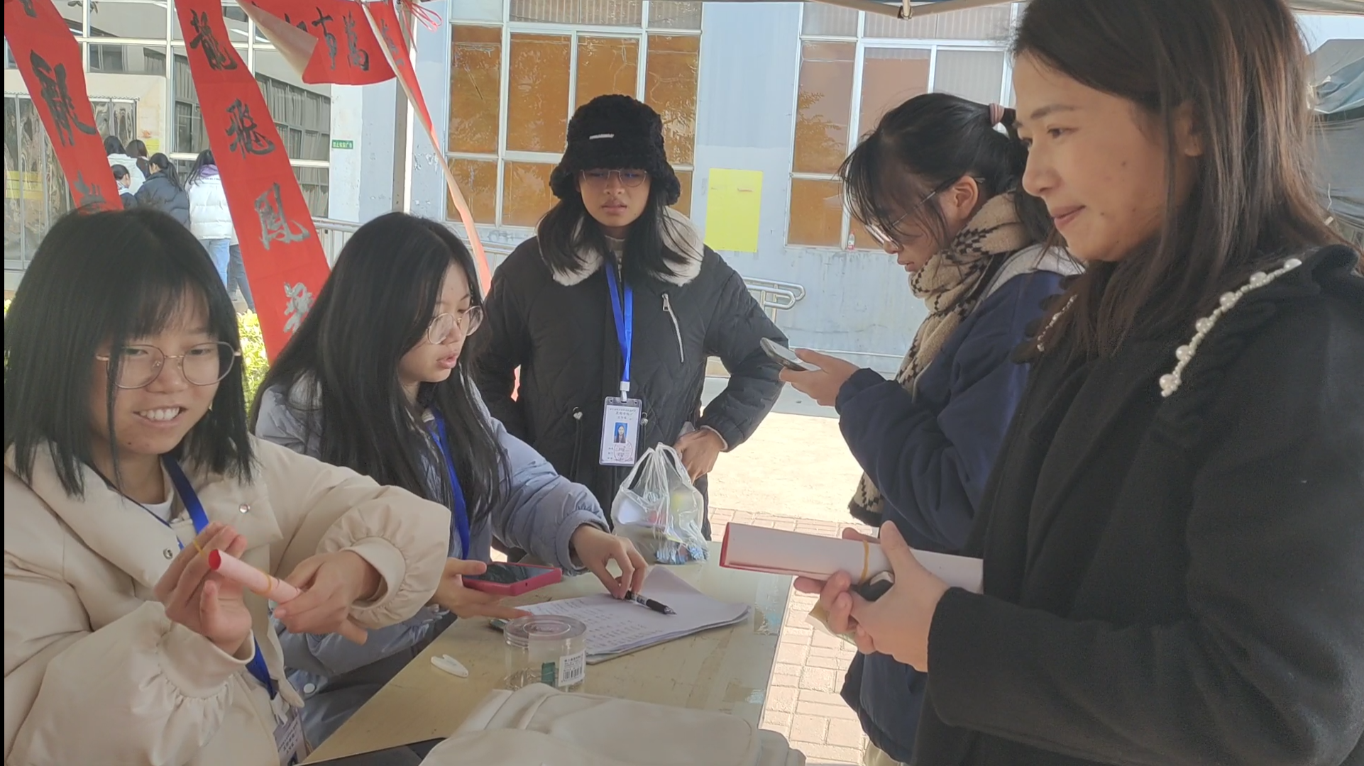 活动现场,热闹非凡,三韵书社社长骆翠文及社员们挥毫泼墨,将美好的新春祝愿凝于笔端。随后,辅导员覃诗雅和三韵书社社员们将春联赠送给到场的师生们。一张张行云流水的“福”字、一副副喜庆吉祥的春联,不仅增添了浓郁的年味,更承载着日韩av