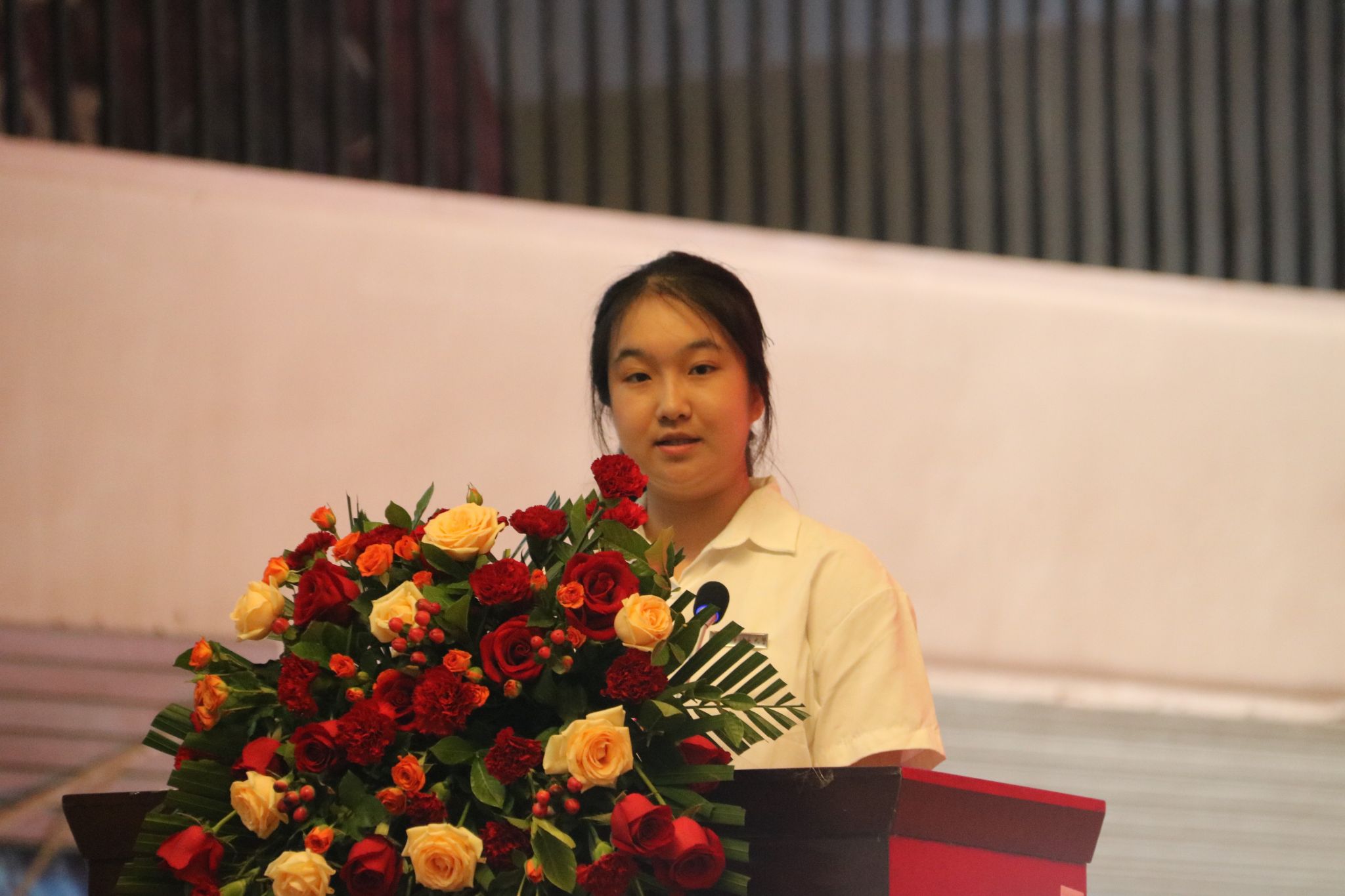 典礼在庄严的国歌声中拉开序幕,陆以宏书记向新生们表示欢迎,并逐一介绍主席台就坐的领导和老师。接着,学院院长梁宇致辞。她对新同学的加入表示了最热烈的欢迎,并带领新生们回顾了学院的悠久历史和所获佳绩,同时也对大家殷殷嘱托,鼓励新生们要立鸿鹄志、勤学笃行、守正创新、追求卓越、敢于挑战,为实现自己的理想和教育强国梦而不懈奋斗。教师代表理科教研室副主任、2024级本科一班班主任周俊伽的发言,她激励同学们珍惜大学生时光,利用好这个学习平台,不断突破自我,实现人生价值。随后,高年级学生代表2021级全科三班曾钦平、研究生新生学生代表2024级肖靖丽和新生代表2024级本四班许家维依次发言。最后,全体新生进行入学宣誓,典礼在奏唱校歌中结束。