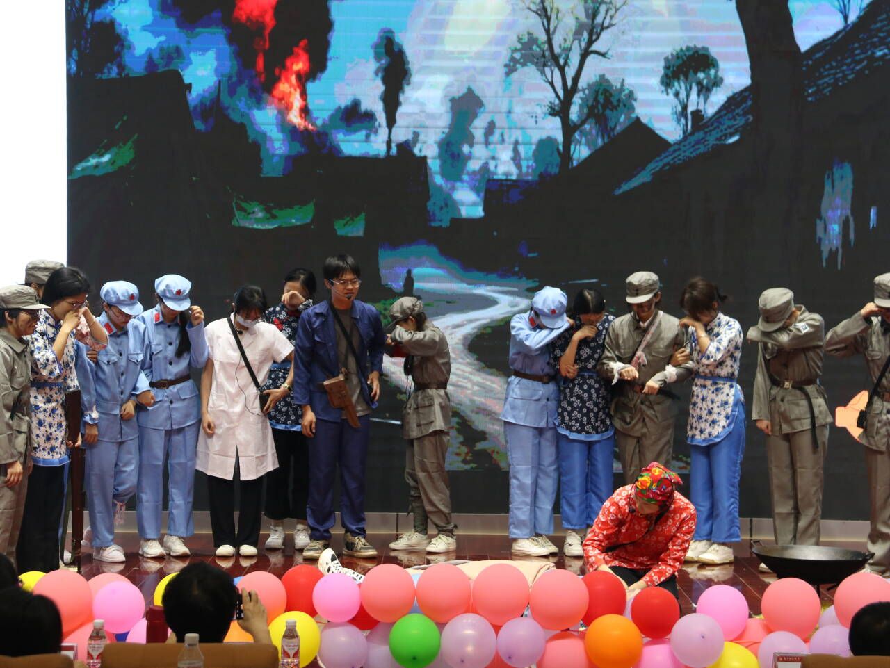 活动在向日葵艺术团充满活力与激情的啦啦操中拉开序幕。首先,陆以宏书记为比赛致辞,他表示要传承和弘扬学院“百年种桃种李种春风,廿载追云追月追太阳”的优良传统,希望同学们通过课本剧大赛这个平台磨砺自我,多维度领略领略经典的魅力、展示青春的风采。随后,各剧组依次登场表演。其中,《去年的树》《孔雀东南飞》《陈太丘与友期行》三部作品是以经典文本为核心,挖掘人性与情感内核;《纪念刘和珍君》《百合花》《金陵十三钗》三部作品则是聚焦历史题材,致敬英烈与时代精神;作品《桥》展现中共党员担当与大义的;作品《茶馆》则是以小见大折射社会变迁与时代沧桑。每部作品,同学们都以生动的表演和精心的编排,展现对经典的独特诠释。此外,中场休息与游戏互动环节增添了现场的活跃氛围。经过激烈的角逐,最终评选出一、二、三等奖以及最佳人气奖、最佳舞台设计奖、最佳创意编剧奖、最佳导演奖、最佳舞美奖、最佳个人演绎奖等奖项。评委李素娟老师在点评时肯定了所有剧本创作的创新转化以及同学们契合主题的表演能力,希望今后的在服装、道具、剧本用词等方面可以更优化、再进步。