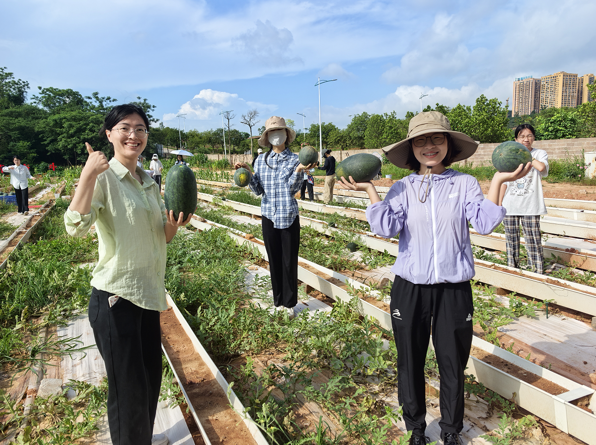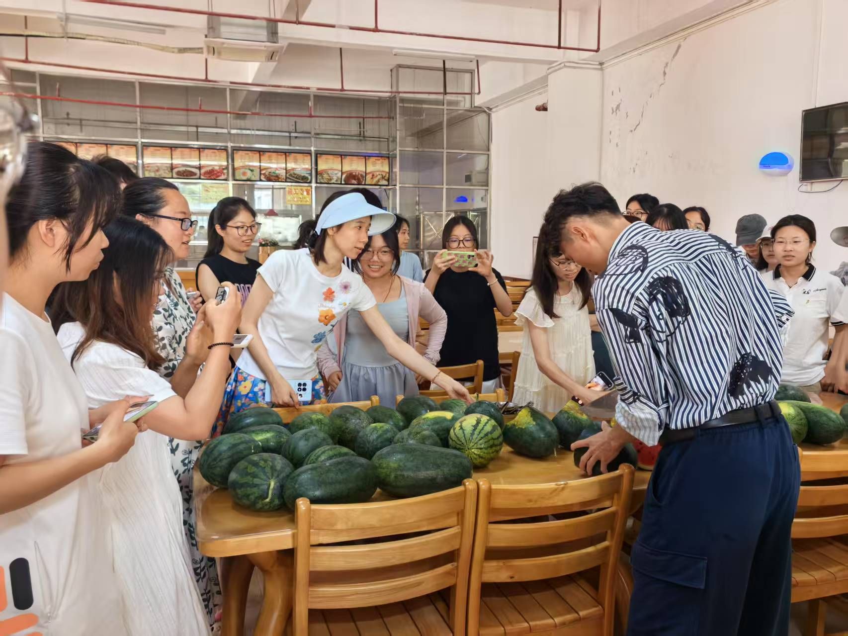 当日上午,学院师生党员前往五合劳动教育基地,亲手采摘前期种植的西瓜。分享会上,苏学权副书记带领全体人员回顾了劳动实践的历程,这片曾被质疑为“贫瘠之地”的土地,在师生们的辛勤耕耘下焕发生机。学生党员、积极分子在教师带领下,克服土壤板结、水源不足等困难,通过改良土壤、科学种植,将荒地改造成瓜果飘香的丰收田。他特别提到,劳动基地的丰收离不开饭堂职工、宿管人员等学校后勤工作人员的鼎力支持,从工具提供到技术指导,从日常照料到突发问题解决,后勤人员的默默付出为师生们解决了后顾之忧。此言引发全场共鸣,大家纷纷表示,将把感恩之心转化为行动,在今后教育实践工作中继续发扬艰苦奋斗精神。分享会尾声,全体人员围坐一堂,品尝亲手种植、采摘的西瓜。清甜的汁水浸润心田,欢声笑语中,师生们畅谈劳动感悟