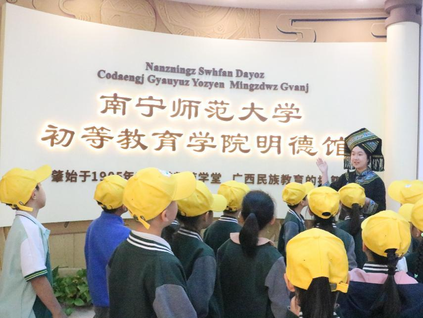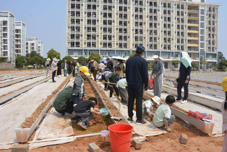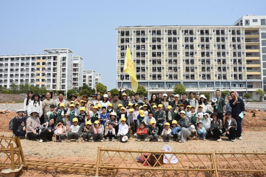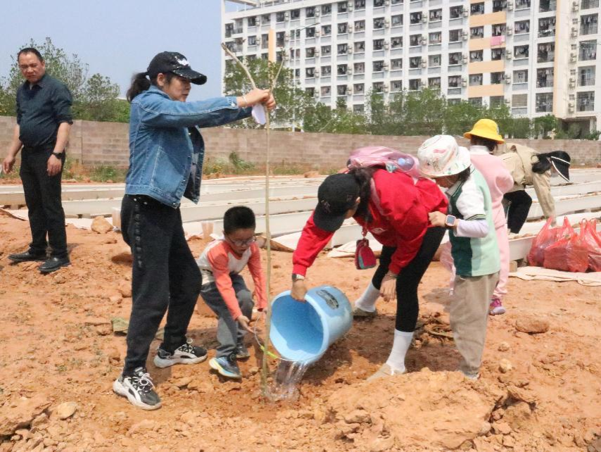 的发展历程和深厚的文化底蕴。接着,在李露露老师以及工作人员的指导下在劳动吧制作壮乡小香囊和非遗漆扇。在劳动教育基地,师生和家长们听从谢廷建老师讲解植树方法及步骤后,随即前往划分好的植树区域开始劳动,他们协作挖坑、栽种树苗、填土、浇水等,并将祝福语写在亲手制作的树牌上,挂至新栽树苗上,寄语希望。