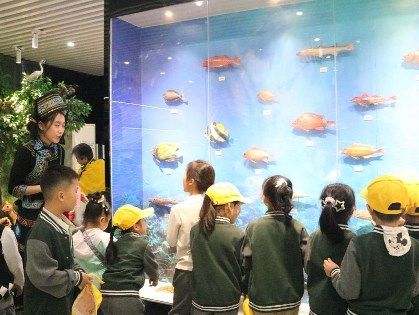 活动伊始,同学们戴着班级小黄帽有序集合,学生和家长分成两组交叉参观了理综明德馆和生物标本室,在学生志愿者的讲解中了解日韩av