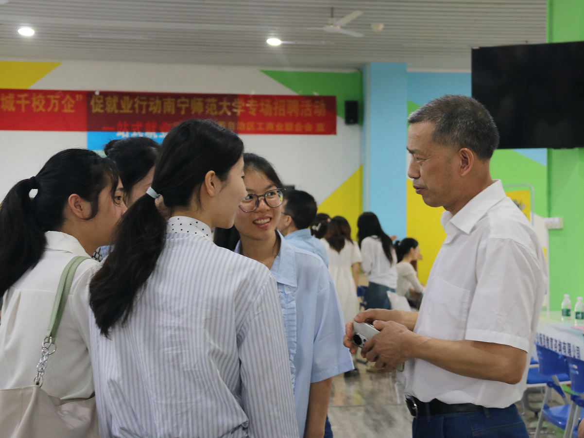 招聘会上,学院党政领导班子成员、系主任、毕业班班主任、学工办辅导员等领导、老师在现场进行就业指导与服务。他们深入招聘会现场,与用人单位代表亲切交谈,询问其招聘需求与进展情况,并与求职毕业生亲切交流,鼓励学生树立信心,把握就业机会。