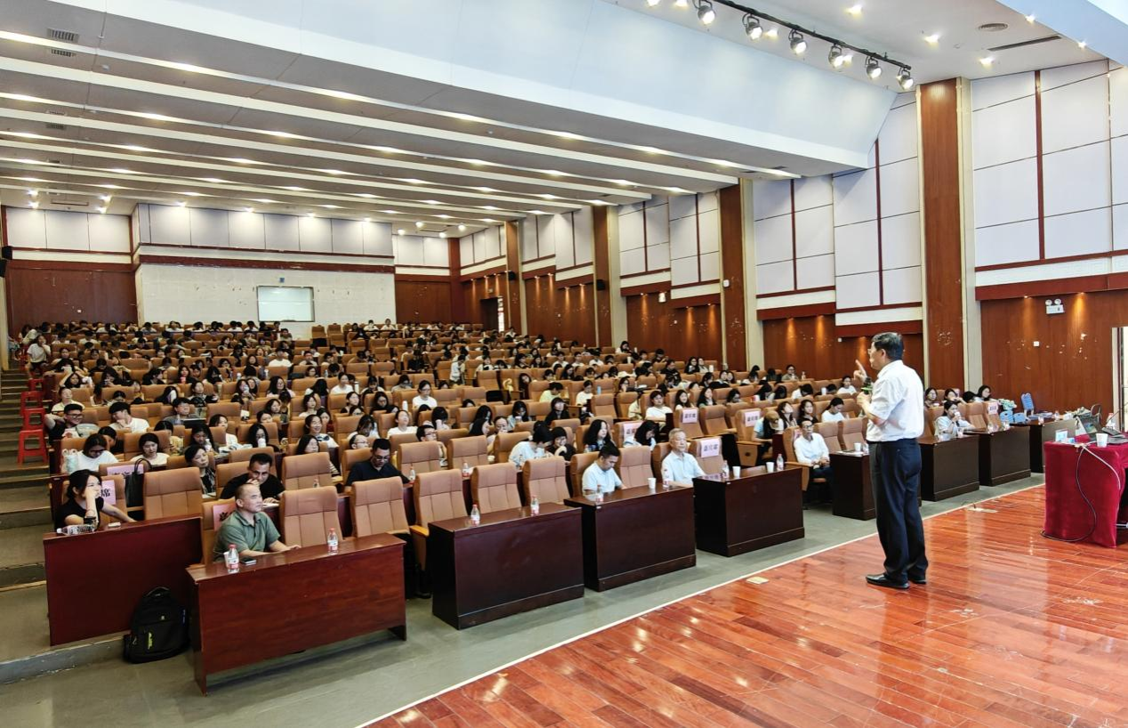 党委书记陆以宏主持,陆以宏书记首先代表学院对汤敏教授的莅临表示热烈欢迎和衷心感谢,他介绍了汤敏教授在经济学研究、政策咨询及公益教育领域的卓越成就,并强调在人工智能技术深刻改变社会的今天,本次报告对师范生和未来教育工作者具有极其重要的指导意义。