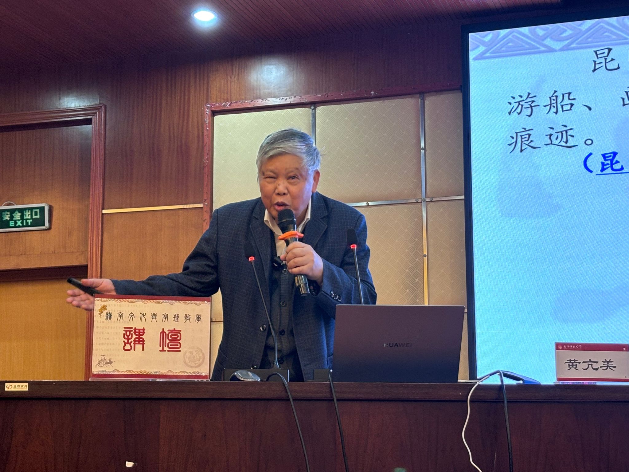 此次报告中,黄亢美研究员以《未来小学教师的汉字文化素养》为主题,就汉字文化与教学实践展开深度分享。他首先阐述了诗律、字理等基础概念,随后围绕诗联声律的教学逻辑,结合《枫桥夜泊》等经典诗词解析格律诗平仄规律,同时通过学生创作案例,阐释“诗联声律知识在教学中的运用”,并示范了“依据平仄或节奏梳理词序”的实用教学方法。整场报告由理论到实践,内容翔实,不仅深化了在场师范生对汉字文化的理解,更为他们未来的教学实践提供了宝贵借鉴。
