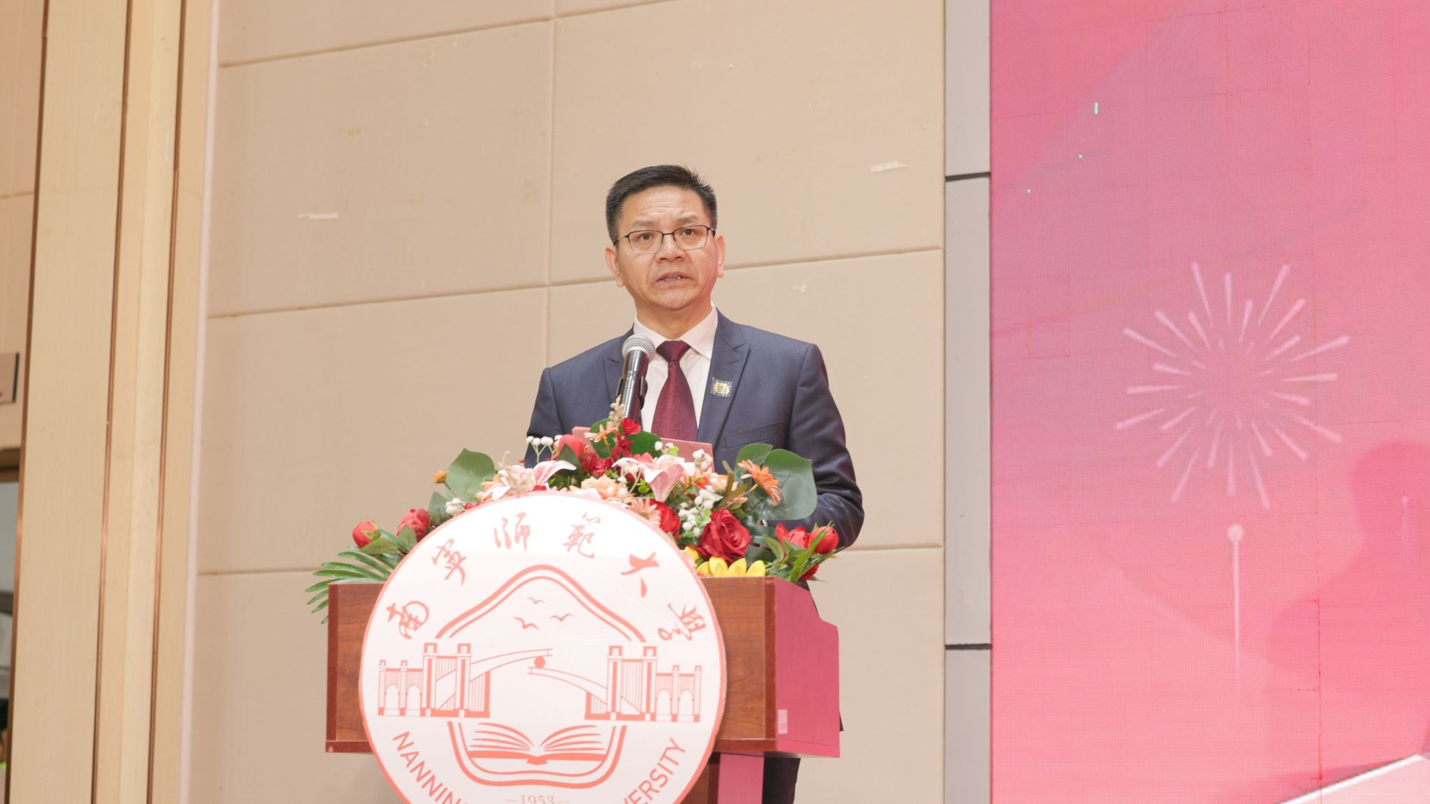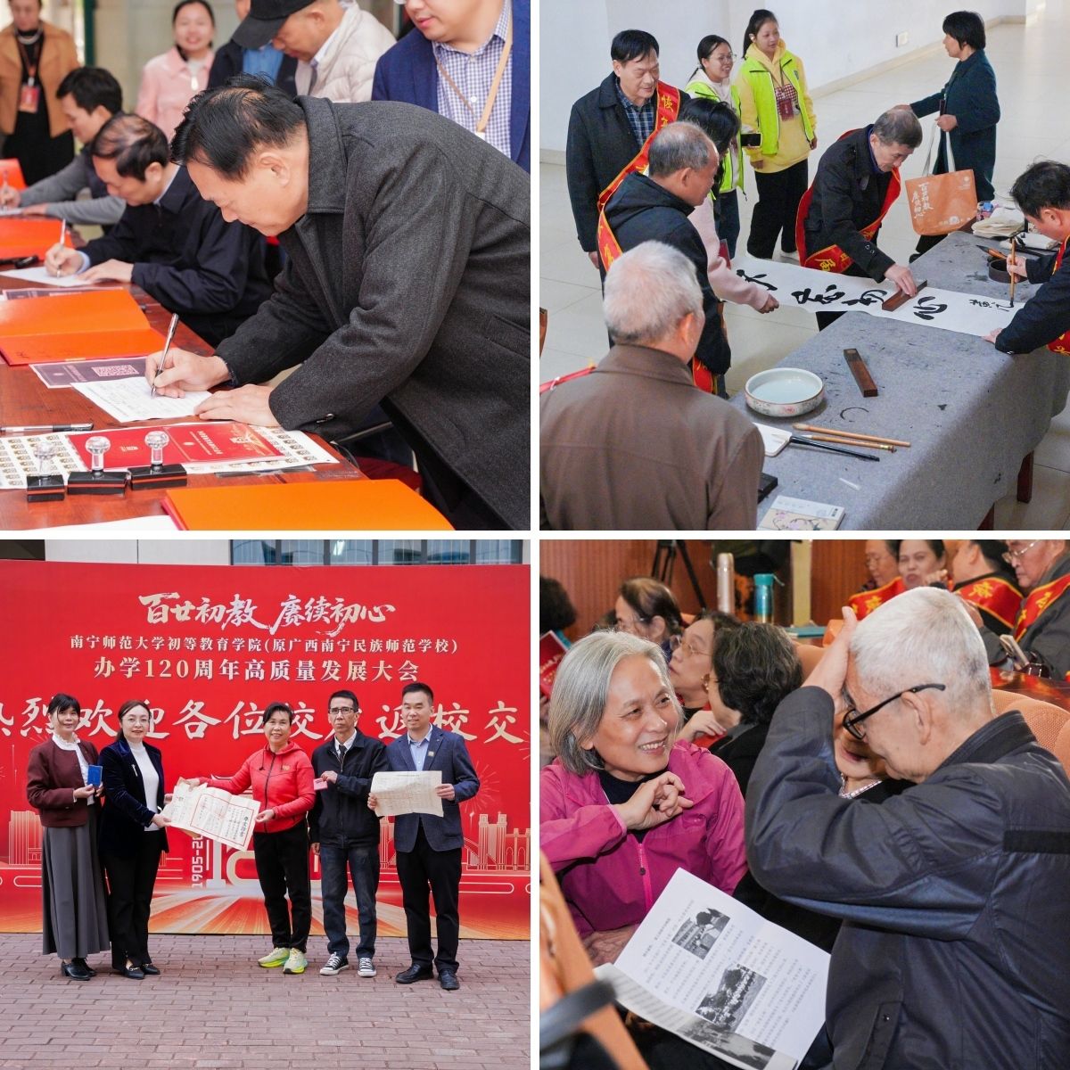 (原广西南宁民族师范学校)在五合校区文综114报告厅举行办学120周年高质量发展大会。各级领导、海内外校友、兄弟院校代表、行业嘉宾及全院师生代表欢聚一堂,共同见证这一承载历史荣光、迈向未来征程的重要时刻。大会通过线上线下同步直播,各地校友及社会各界人士共襄盛举,云端观礼人数超百万。