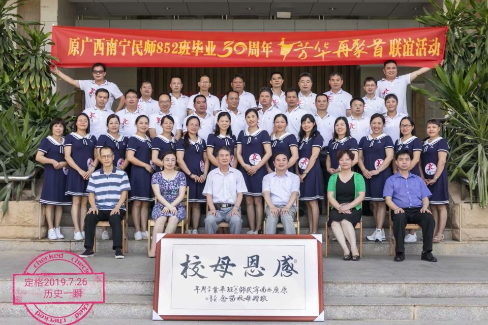 在改革中乘势而上,学科建设结出累累硕果,育人成效遍布四方,这份蓬勃力量更让我们满心振奋。我们1989届毕业生中,有人已带着孙辈翻看母校旧照,重温青春故事;有人仍坚守讲台,把母校教给我们的道理、师长传递的温暖,继续传递给更多孩子。无论走多远、在何方,“南宁师大人”的身份始终是我们的底色,母校那束温暖的光,既照亮了我们的青春与职业生涯,更指引着往后人生的方向。也想对学弟学妹们说,愿你们承续母校的精神火种,在求学路上踏实求索,在未来的教育征途上奋力拼搏,让“南宁师大”的荣光在新时代继续闪耀,让这份育人初心代代相传。