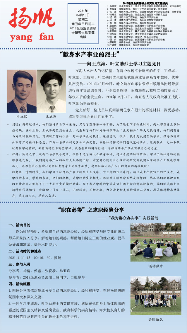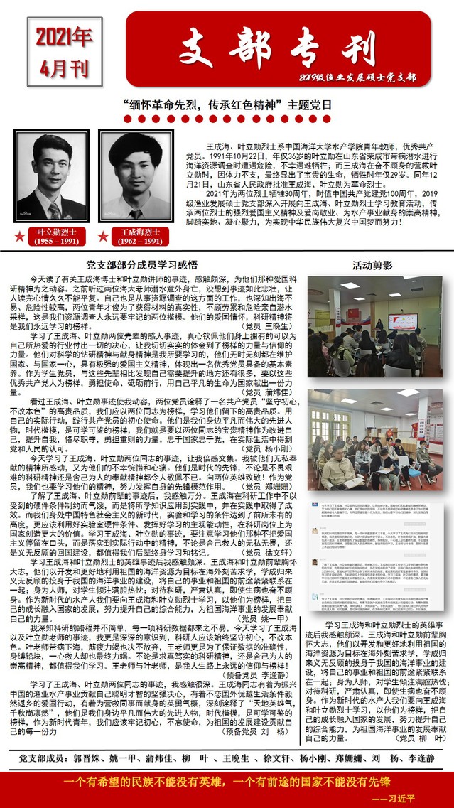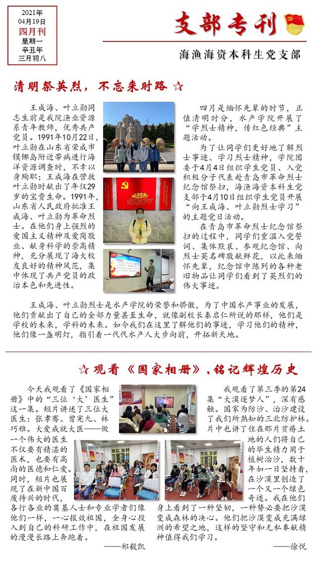 水产学院党史学习教育之“学烈士精神、传红色经典”支部专刊