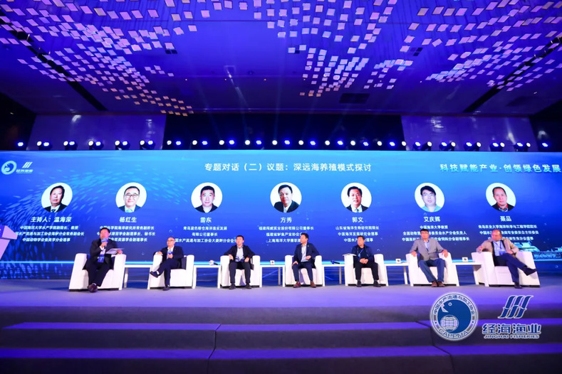 业内专家还围绕“深远海养殖装备机遇与挑战”“深远海养殖模式探讨”“深远海养殖水产品的加工与流通”等主题,就装备方向、养殖方向、加工流通方向进行专题对话。其中第二场对话由中国海洋大学水产学院副院长温海深教授主持,他指出在渔业转型发展进程中,发展深远海养殖是突破生态环境和自然资源约束性挑战,实现新时期中国海水养殖业可持续发展的战略方向。基于联合国粮食及农业组织(FAO)关于深远海养殖发展的定义,结合中国海水养殖业发展水平和海域条件,对中国深远海养殖概念进行了界定。提出养殖海域规划、养殖品种选择、养殖系统构建是关系深远海养殖产业稳步有序发展的重要因素。在养殖模式板块,对于养殖海域规划方面,应重点考虑养殖排放、环境承载力和海域条件;在养殖品种选择方面,应重点考虑经济潜力、苗种供应能力、适应水环境和养殖技术的可行性等。参与该板块专题对话的专家:中国科学院海洋研究所研究员杨红生、中国流通与加工协会大菱鲆分会会长雷东、福建闽威实业股份有限公司董事长方秀、山东省海洋科学研究院研究员郭文、中国海洋大学水产学院教授艾庆辉、青岛农业大学海洋科学与工程学院院长聂品教授。对话交流中,专家们侧重探讨了深远海养殖模式概念、养殖场景内涵;大菱鲆养殖对于深远海网箱养殖模式的启示;福建近海花鲈养殖状况与北部海区深远海养殖的异同点;有些专家认为,我们北部深远海养殖品种应该以土著鱼类为主,选择生长快速、适应性强的品种,对于引进的鲑鳟鱼,不适宜大规模发展;营养与饲料是鱼类养殖的重要环节,也是养殖成本形成的重要因素,需要根据深远海的特殊性,进行饲料配方的优化设计,借鉴珠海花鲈池塘养殖饲料营销的经验教训,提高饲料品质,生产花鲈高端产品。部分专家们聚焦深远海养殖可能出现的重大疾病问题进行研讨,他们认为做好预防工作十分必要,同时建立一支专业的鱼病研究团队,重点研发疫苗,及时诊断与防控。温海深教授在最后总结中指出,深远海网箱养殖是个全新的系统工程,需要各个学科相互支撑,潜心研究,才能形成全产业链条;深远海模式中所涉及的概念,表面上与传统养殖模式相同,但是这些概念均被赋予了新的内涵;深远海养殖模式,在我国提出近10年来,目前是大力发展深远海养殖的最好契机,希望在中集来福士集团的支持下,养殖设施、品种选择、养殖模式、流通与加工等各方面都能够得到全面提升,推动我国水产领域形成新的业态。
