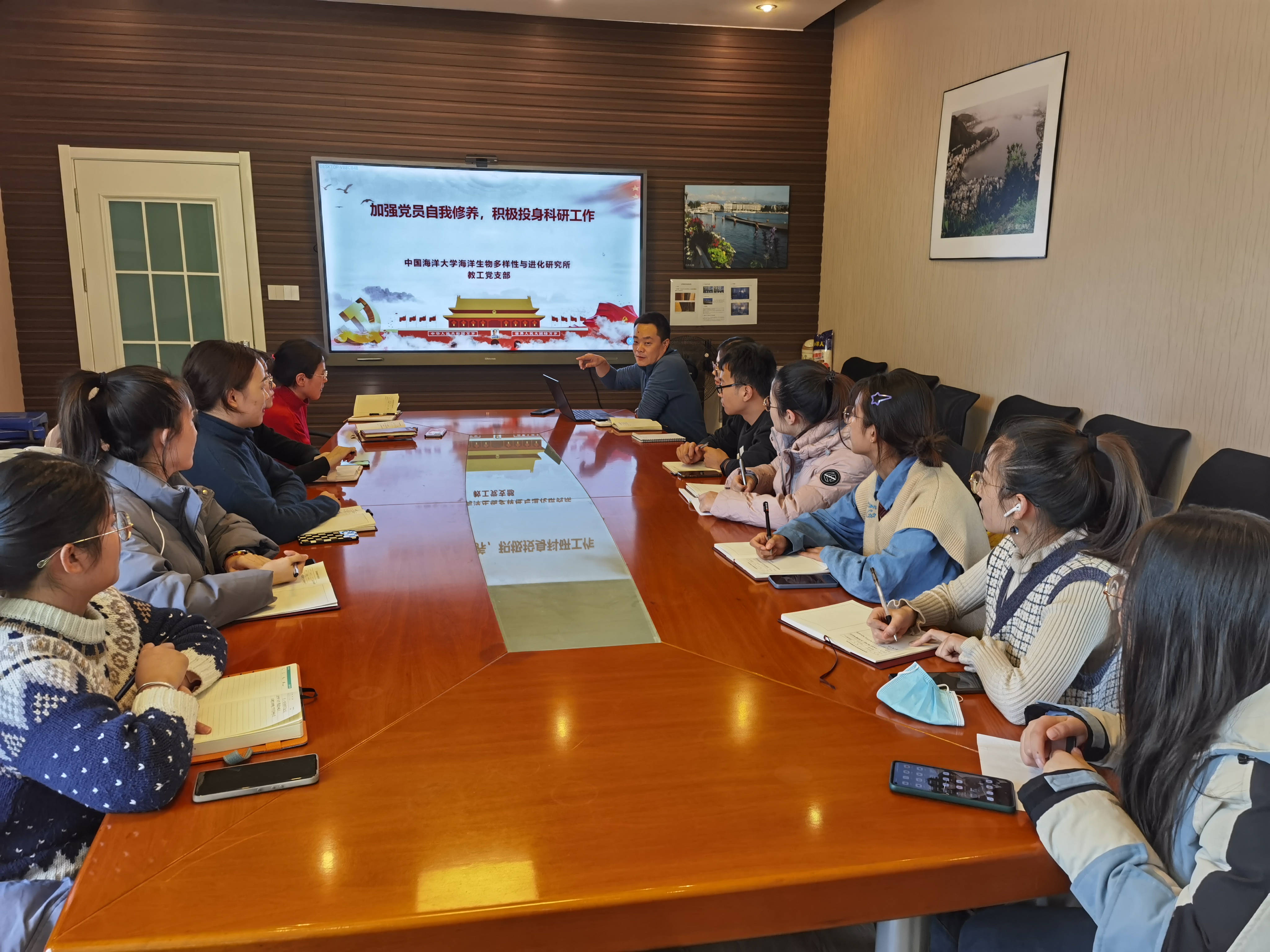 2021 12 1 日下午,2019 级水生生物硕士研究生党支部开展对话党员导师主题党日活动。会议由支部党员导师马洪钢老师主持,全体党员出席。