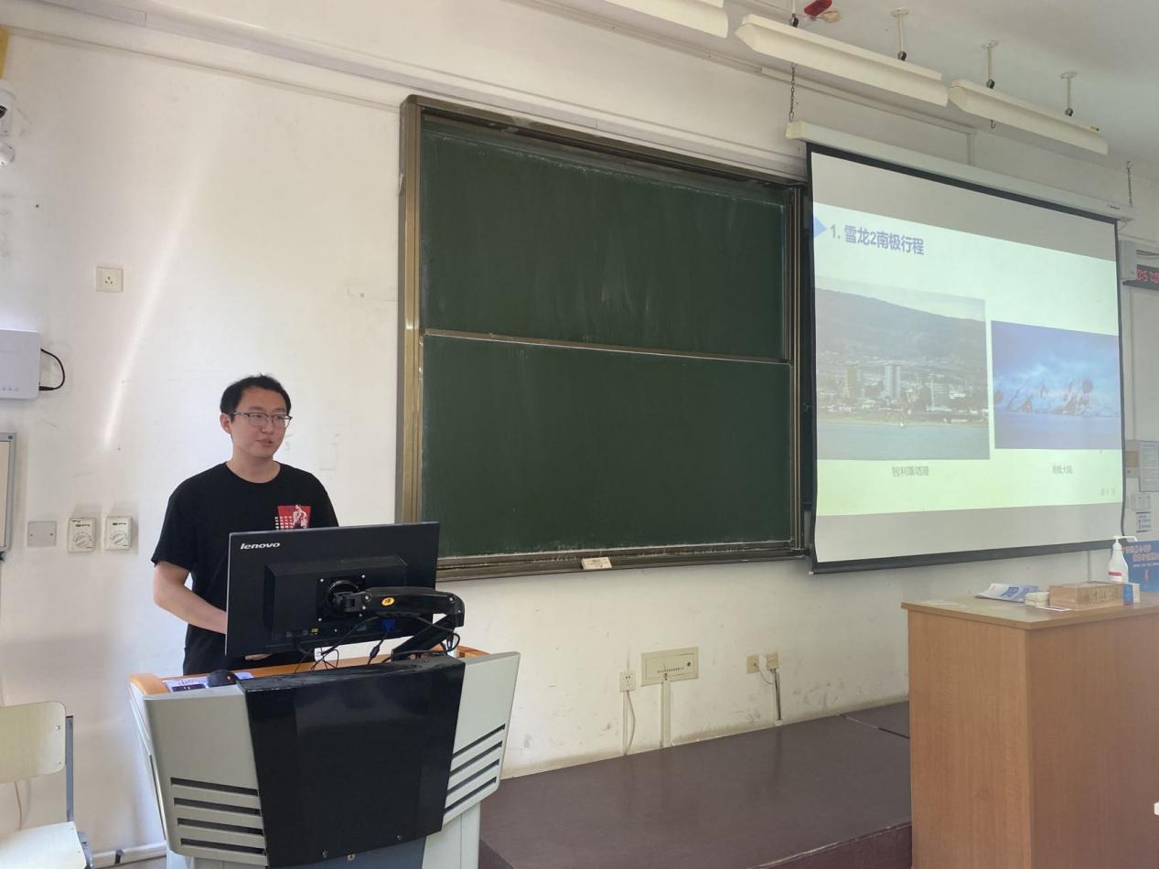 2019级渔业资源博士研究生田浩介绍了“海男”远洋调查团队在西北太平洋从事渔业调查工作中的工作情况与工作经验,同时也向同学们介绍了渔业海洋学实验室的研究背景和研究方向及其自身渔业遥感研究方向的研究背景,进一步促进了同学们对水产学院实验室的了解。2020级渔业资源博士研究生曹畅、2021级渔业资源博士研究生王业辉和2020级捕捞学硕士研究生王鹏浩分别对乘坐“雪龙号”和“雪龙2”号基地破冰船参加第38次中国南极科学考察经历进行分享,用生动的图片及视频资料向同学们展示了海上科研的艰辛以及丰富多彩的海上生活及大洋风景,使同学们对严肃与欢乐并存的海上科研生活有了更进一步的认识。同时学长们对同学们提出的关于如何进入南极科考队以及何时确立自己的科研方向等问题进行了细致的回答,大家受益良多,收获颇丰。