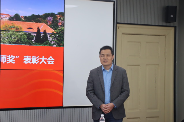 艾庆辉宣读了《关于表彰2024年“优秀青年教师奖”获奖教师的决定》。学院决定授予毕春伟、李贤、李昀、刘士凯4位教师“优秀青年教师奖”。张猛、艾庆辉共同为受表彰的教师颁发荣誉证书。