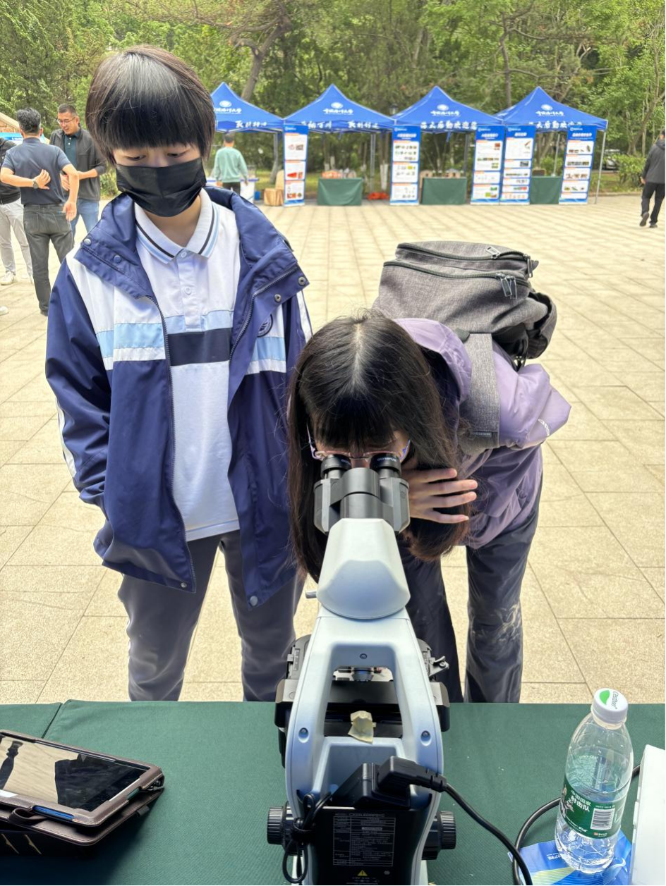 人鱼广场展示了多个由实验室为大家精心准备的实验器材和精美的宣传海报,引得现场观众驻足观看。通过实际操作和演示,使观众能够更直观地理解学科研究的意义所在,并有机会亲自参与其中,十分有趣。