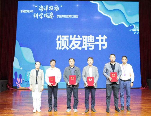 10月12日下午,水产学院刘阳副院长、郑小东教授、朱明壮高级实验师、继续教育学院青少年研学中心霍玉东主任受邀参加北京东城区青少年“海洋牧场”科学观察科普实践活动学生探究成果展示会并受聘为指导专家。