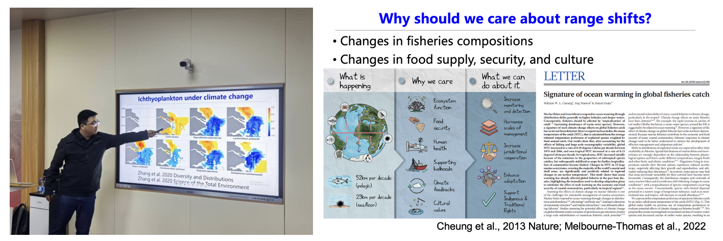 报告中,张志新研究员围绕气候变化背景下物种脆弱性评估的关键科学问题,系统阐述了物种分布模型在综合评估中的重要作用,并结合典型海洋生态系统案例,展示了如何通过多源数据整合与模型分析提升气候风险评估的科学性与决策参考价值。