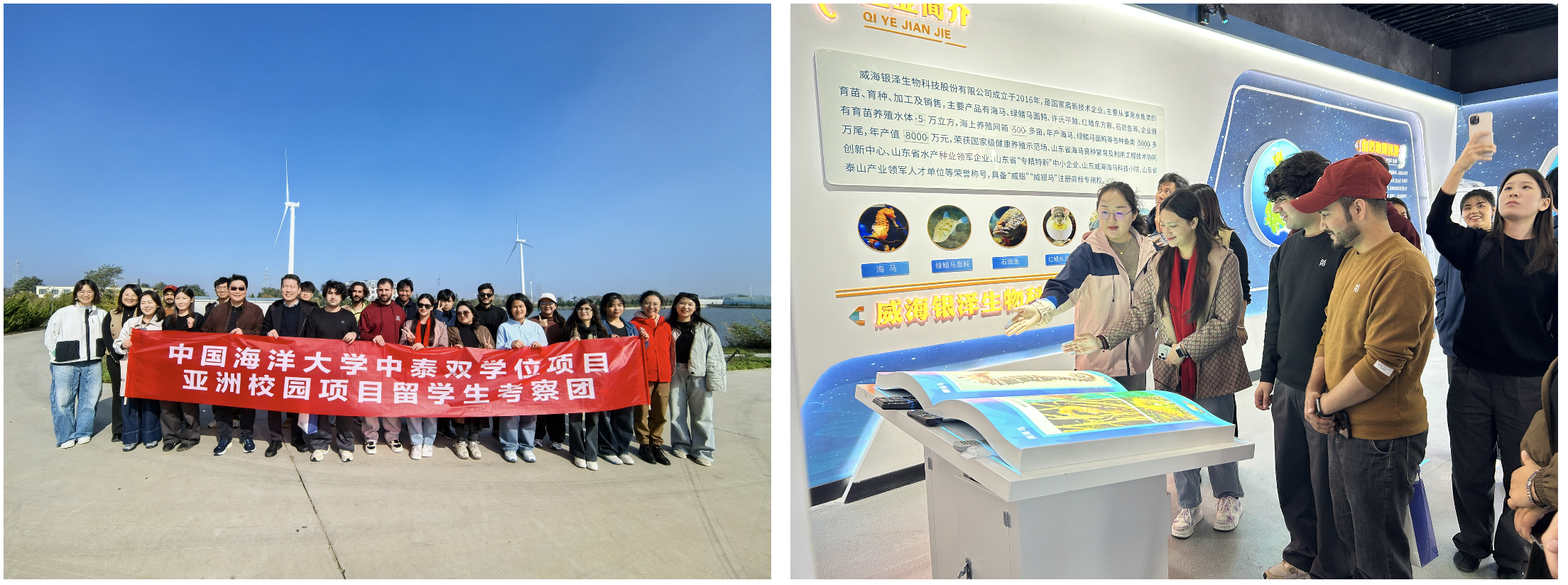 为深入贯彻落实习近平总书记给中国海洋大学全体师生的重要回信精神,践行习近平总书记关于大农业观、大食物观的重要论述,10月31日至11月2日,水产学院亚洲校园“亚洲渔业与海洋环境拔尖人才培养项目(AFIMA)”和中泰硕士研究生双学位项目留学生组成“耕海牧渔”实践团,开展了第三期“走近中国水产,体验高速发展”山东水产企业考察活动。