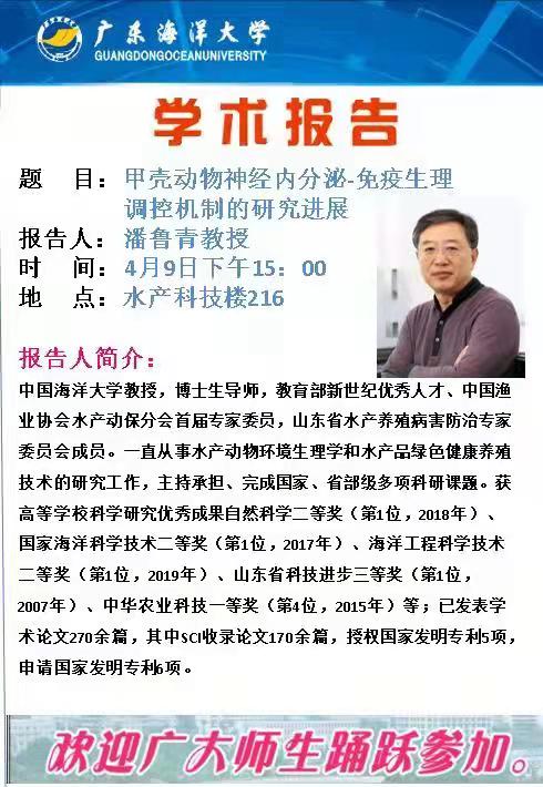 潘鲁青教授在广东海洋大学水产学院做学术报告