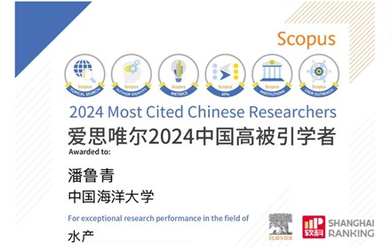 2025325日,爱思唯尔(Elsevier) 正式发布2024“中国高被引学者” (Highly Cited Chinese Researchers) 榜单,此榜单以全球权威的引文与索引数据库Scopusc作为中国学者科研成果的统计来源,遴选全球高校、企业及科研机构中对所在研究领域具有重大且广泛影响的顶尖科研人才,受到国内外众多媒体和学者的高度关注。2024中国高被引学者上榜共计6388位学者,分别来自547所高校、企业及科研机构,覆盖了10个学科领域中的83门一级学科,其中水产学科有21人入选,中国海洋大学有5人入选。研究室潘鲁青教授再度入选该榜单,实现2020-2024年连续5年获此殊荣。