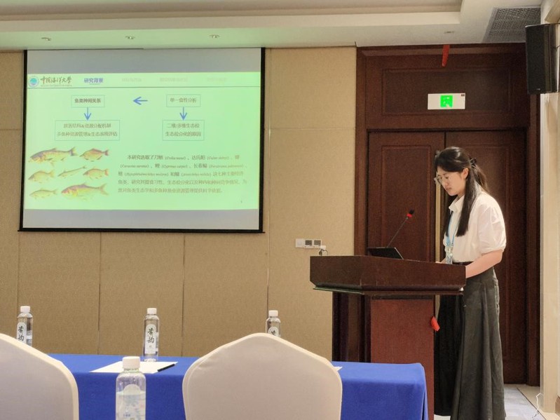 王子欣进行《淮河干流安徽段七种主要经济鱼类生态位分化与种间营养联系》的报告