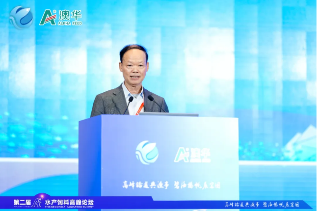 中国工程院、中国海洋大学教授麦康森院士担任论坛开幕式主持人并致开幕辞。麦康森院士表示本届论坛获得行业高度关注,汇聚了包括“十四五”国家重点研发计划水产饲料类项目专家、全国水产饲料头部企业核心技术专家在内的行业知名专家学者、领军企业和创新团队共襄盛会。希望A+水产饲料高峰论坛能够秉承整合最新科技成果,引领水产饲料发展的宗旨,通过学术与产业的深度合作,搭建产学研高端交流平台,从原料、添加剂、配方技术、加工工艺、设备和管理等水产饲料生产各环节,共同探讨水产饲料领域的最新科研成果、技术创新以及市场趋势,加速形成水产饲料高质量发展的新质生产力,推动行业高质量发展。