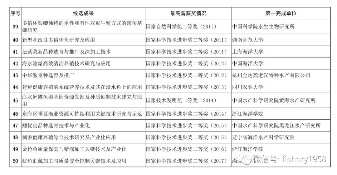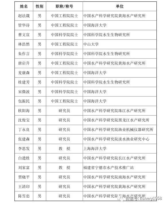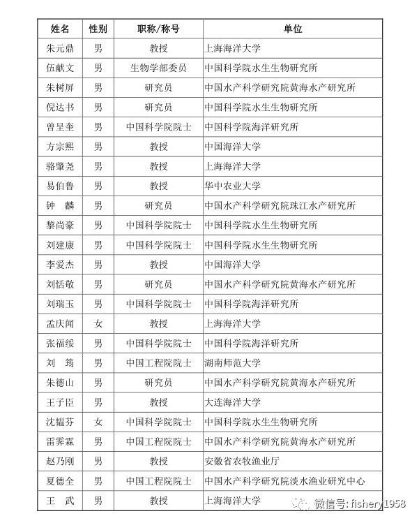 为隆重纪念中国改革开放40周年,全面回顾改革开放40年渔业科技发展历程和辉煌成就,弘扬和宣传一批为渔业产业发展做出突出贡献的科技成果和先进人物,中国水产学会和中国渔业协会联合组织开展了改革开放40周年渔业重大科技成果与突出贡献人物遴选推介活动。经过单位推荐、专家提名、征求意见、专家审议等程序,共遴选出改革开放40周年渔业科技突出贡献人物20名和渔业科技纪念人物24名,渔业科技标志性成果50项。 渔业科技突出贡献人物名单(20名)