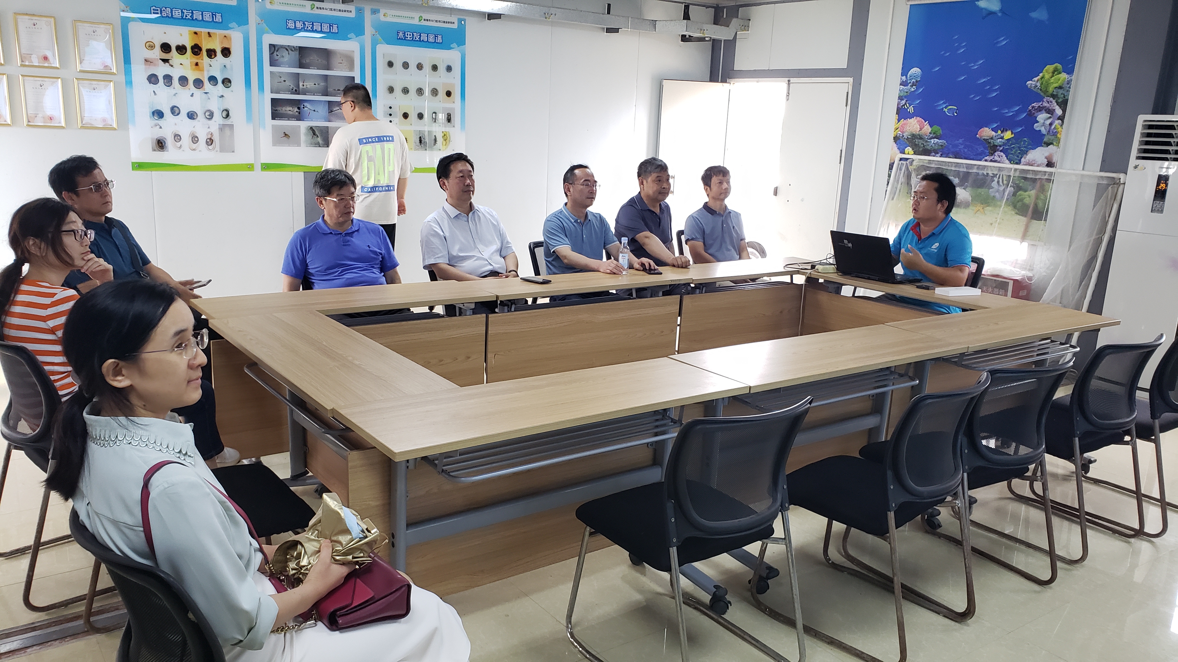 崔所长介绍研究所概况 参观完研究所后,调研小组同崔所长进行了现场座谈,崔所长从海鲈亲本收集、亲本病毒检测、种苗培育三方面介绍了研究所最新工作进展。随后,与会成员就花鲈苗种问题展开讨论,崔所长说到,在福建调研期间了解到,当地亲鱼仅是挑选体型大的个体,缺少科学选育的过程。此外,在人工养殖的过程中,会人工将长得过快的个体筛除,这样长期以来,也会导致长得快这一优势性状弱化。温教授认为,目前看来,今年出现的苗种问题,是多年积累的系统性、结构性的问题,种源就存在质量问题,是育种的源头出现了问题,这一问题的解决,需要通过政府、企业、科研机构长期的合作、推动才能解决。