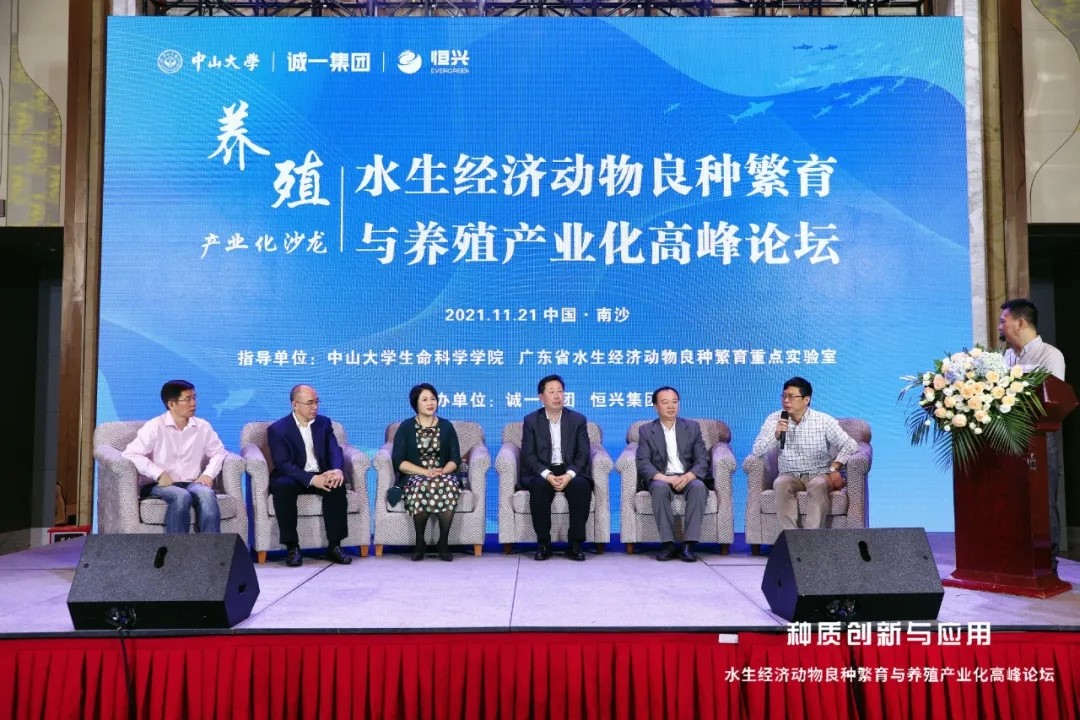 11月21日,由中山大学广东省水生经济动物良种繁育重点实验室主办,广州市诚一水产科技有限公司、广东恒兴集团有限公司主办的“水产种质创新与应用”论坛,在广州市南沙区举行。实验室温海深教授和齐鑫副教授参加会议,中山大学教授张勇担任主持,珠江水产研究所研究员叶星作大会报告《鳜鲈良种培育及相关研究汇报》,广东海洋大学教授朱春华作大会报告《南方海水种业硅谷建设设想》报告,阳江职业技术学院教授陈兴汉介绍了《疣吻沙蚕(禾虫)种业创新及综合种养产业化进展》。中国工程院院士林浩然指出:我国是世界水产养殖大国,从2008年起养殖产量一直占世界养殖总产量的60%-70%,其中优良苗种起到了巨大的推动和促进作用。大力发展水产种业,开展种质创新与应用,对于保障水产养殖业的健康可持续发展、促进渔民增收、服务国家经济发展意义深远。广东在水产种业方面的成绩斐然,是全国水产种苗研发的风向标。 海南热带海洋学院水产与生命学院副院长黄海、广东省农业技术推广中心首席专家张海发、诚一集团董事长阳会军、恒兴集团副总裁刘付永忠、中国海洋大学水产学院副院长温海深、广东海洋大学水产学院院长李广丽、珠江水产研究所研究员谢骏出席“水产种业创新与养殖产业化”主题沙龙上进行了专业分享。温海深教授重点分享了我国海鲈种质资源、人工繁育、遗传育种研究的状况,以及今后的重点研发方向。
