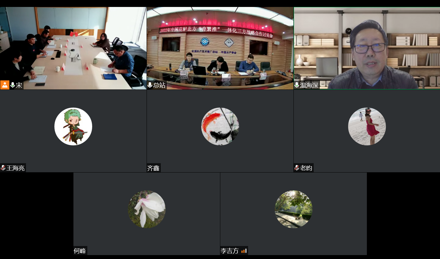 2022年1月20日下午,由烟台经海海洋渔业有限公司(经海渔业)发起,全国水产技术推广总站(水产总站)、中国海洋大学水产学院(中国海大)作为技术支撑的【中国花鲈北方“育繁推”一体化战略合作讨论会】,通过腾讯会议采用线上线下形式召开。水产总站基地处李刚处长、王庆龙副处长、张凯强实验师,经海渔业总经理郭福元、科研部经理史春芳,中国海洋大学水产学院温海深教授、李昀教授等15人参加研讨会。