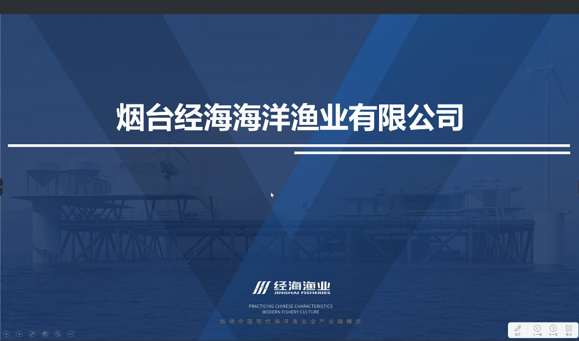 经海渔业汇报截图 会上,三方就初拟的三方合作协议内容和实施方案进行了讨论,温海深从大规格花鲈亲鱼运输技术、高密度养殖梯度盐化技术、深远海养殖品种定位、群体追溯、盐碱水域养殖推广、知识产权共享等方面提出了改善意见和建议。李刚处长就推广总站苗种需求量和苗种养殖厂区分布进行了介绍。郭福元总经理提出三方应明确科研合作的属性,各方努力将各自负责的环节的生产、运输等成本降到最低,以形成可推广的生产模式。 通过本次会议,三方进一步明确了各方的职责和合作方向,坚定了合作意向。三方将共同努力探索花鲈陆海接力“育繁推”一体化的产业模式,为花鲈新空间养殖模式构建探索有效路径。