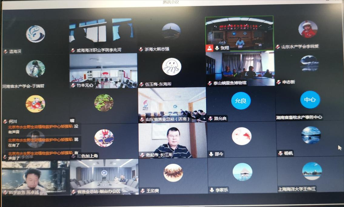 2022 年全国水产科普日主会场活动,由于国内新冠肺炎疫情影响,于2022 年 9 月 23 日上午,采用“腾讯会议”平台,以线上线下结合的方式举办。来自中国水产学会各分支机构代表、科学传播专家团队首席专家、科普教育基地负责人等近200人出席会议。开幕式期间,全国水产技术推广总站张锋书记致辞,中国农业出版社养殖分社王金环副编审代表2022年度科学传播专家团队首席专家发言。开幕式后,中国水产科学研究院长江水产研究所危起伟研究员做“科学放流,我们共同努力”科普讲座。中国海洋大学水产学院教授温海深参加会议。 2022年3月,中国海洋大学水产学组织申报的【中国海鲈养殖产业科学传播专家团队】入选中国水产学会2022年度科学传播专家团队,温海深被遴选为团队首席专家。该团队由中国海洋大学、全国水产技术推广总站、中国水产流通与加工协会、中国农业出版社等人员组成,凝聚国内最顶尖的海鲈养殖研究、产业技术推广与科学传播力量,主要完成海鲈科普图文作品撰写、原创科普短视频作品制作、每年组织开展水产科普活动等。该团队融合了国家海水鱼产业技术体系【海鲈种质资源与品种改良】岗位科学家团队、中国水产流通与加工协会海鲈分会、国家【山东利津海鲈科技小院】等海鲈研究、技术开发、产业服务、科普等功能,更好推进我国海鲈养殖产业健康可持续发展。