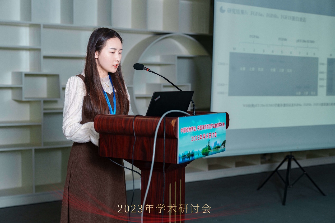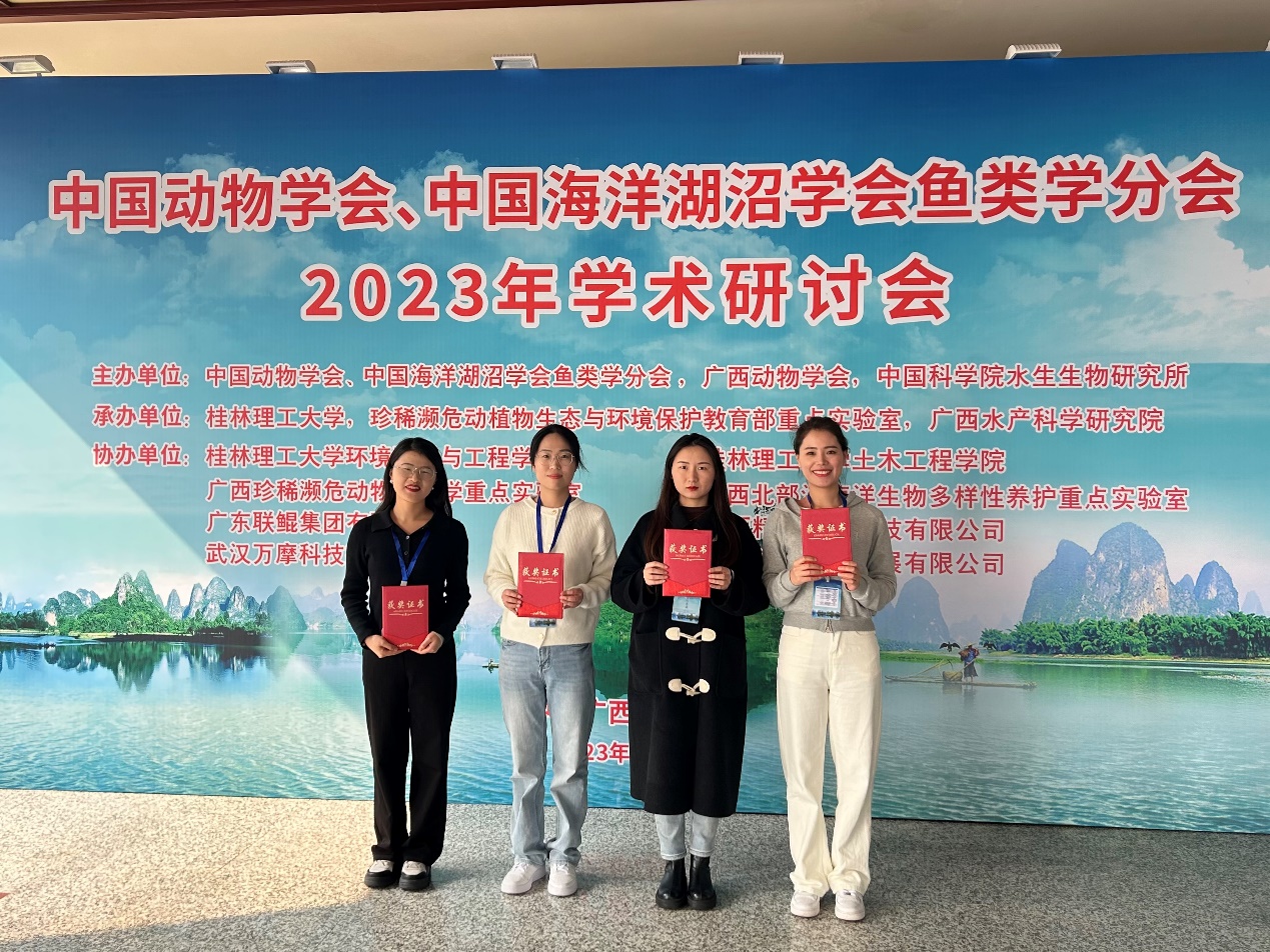 20231229日至202411日,中国动物学会、中国海洋湖沼学会鱼类学分会2023年学术研讨会在广西省桂林市召开,会议由中国动物学会暨中国海洋湖沼学会鱼类学分会广西动物学会等单位主办,桂林理工大学等单位承办。会议主题涵盖鱼类发育与遗传、鱼类分类及生态、鱼类生理、鱼类生物多样性等。大会主题报告:桂建芳院士以《鲫的遗传育种故事》为题,揭示了银鲫独特的生殖方式及其演化的遗传机制;刘少军院士以《鱼类良种良养良销》为题,倡导鱼类良种良养良销体系建立及应用;陈松林院士以《海水鱼类生物技术与种业:十年创新与发展》为题,探讨了海水鱼类的研究进展和发展前景。随后何舜平研究员、危起伟研究员、庄平研究员、徐鹏教授、高泽霞教授和吴志强教授也围绕主题进行了相关报告。本次大会展示了鱼类学研究的最新研究成果和重要进展,分享科研经验,为青年学者的成长提供了高水平交流平台。本次会议参会人员500余名,包括国内鱼类学领军科学家、行业专家和研究生,本实验室由温海深教授带领研究生张静茹、杨晶、景潇和郭晴晴出席,并在青年研究生学术论坛中做大会报告博士研究生张静茹、硕士研究生杨晶和硕士研究生景潇获得研究生论坛三等奖,硕士研究生郭晴晴获得研究生论坛优胜奖。