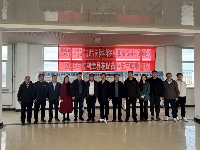 2025年4月5-6日,中国海洋大学水产学院组织山东省海洋科学研究院、东营职业学院、河口区农业农村局、利津县农业农村局,利津县科技局、利津县刁口乡有关专家和领导,在利津县双瀛水产苗种责任有限公司养殖基地,对国家海水鱼产业技术体系“海鲈种质资源与品种改良”岗位科学家项目(CARS-47-G06)和国家重点研发计划“海洋农业与淡水渔业科技创新”专项“北部湾陆海接力智慧渔场养殖装备与新模式”课题三“陆基工厂化鱼贝高效繁育与健康养殖技术”(2022YFD2401203),2024年度花鲈苗种生产进行现场验收。 2024年度利津双瀛基地保有黄渤海来源的花鲈亲鱼225尾(均重3.20 kg),后备亲鱼313尾(均重2.18 kg)。2024年11月15日开始受精卵孵化,经142天培育,获得健康花鲈鱼苗22万尾,平均体长5.53cm,平均体重3.10g,达到项目年度指标。 项目验收后,中国海洋大学温海深教授组织花鲈育种与养殖模式研讨会,各位专家与领导积极献计献策,对今后育种计划提出宝贵意见。2025年,利津县人民政府拟规模化推广海水池塘养殖模式、淡水池塘混养模式,与会专家深入交流了养殖技术问题,以及渔光互补池塘养殖模式。通过此次活动,进一步总结了公司与中国海大合作成果,也为下一步工作推进奠定基础。