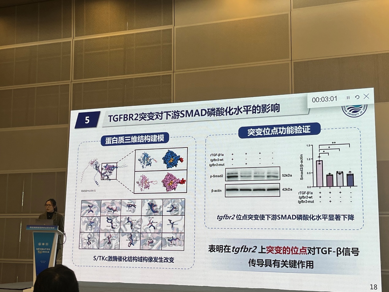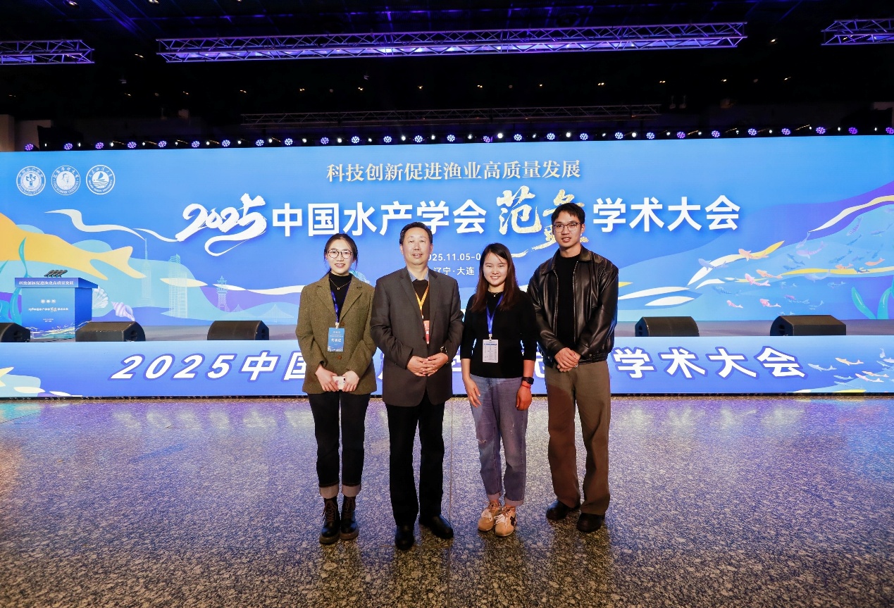 2025114日至7日,2025中国水产学会范蠡学术大会在辽宁大连顺利召开。本次大会由中国水产学会主办,大连海洋大学承办,。大会以“科技创新促进渔业高质量发展”为主题,汇集了国内外水产领域的顶尖专家与学者千余名,围绕水产绿色健康养殖新技术新模式、水产生物技术与遗传育种、水产养殖动物营养与饲料、水产病害防治与水产品质量安全、可持续捕捞等十大专题领域进行交流。温海深教授带领实验室董雅妮和张冲2位博士研究生参加会议。在水产生物技术与遗传育种分会场,董雅妮以作了题为《花鲈抗鰤诺卡氏菌性状的基因组选择育种与分子机制研究》进行了的学术汇报,系统报告了阐述了基于多组学技术的花鲈抗鰤诺卡氏菌性状的分子机制解析以及基因组选择育种进展,该研究有望推动花鲈抗病性状的分子育种工作进迈入高效、精准的新阶段。