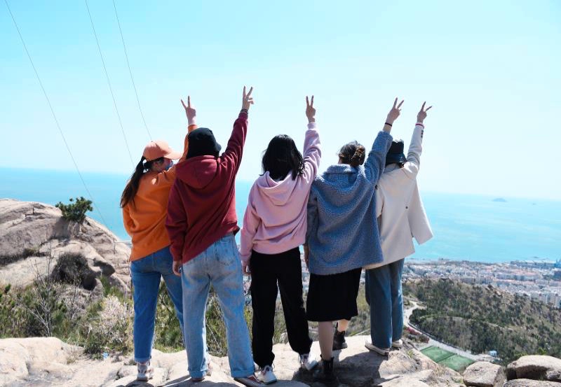山上的人们或驻足赞叹