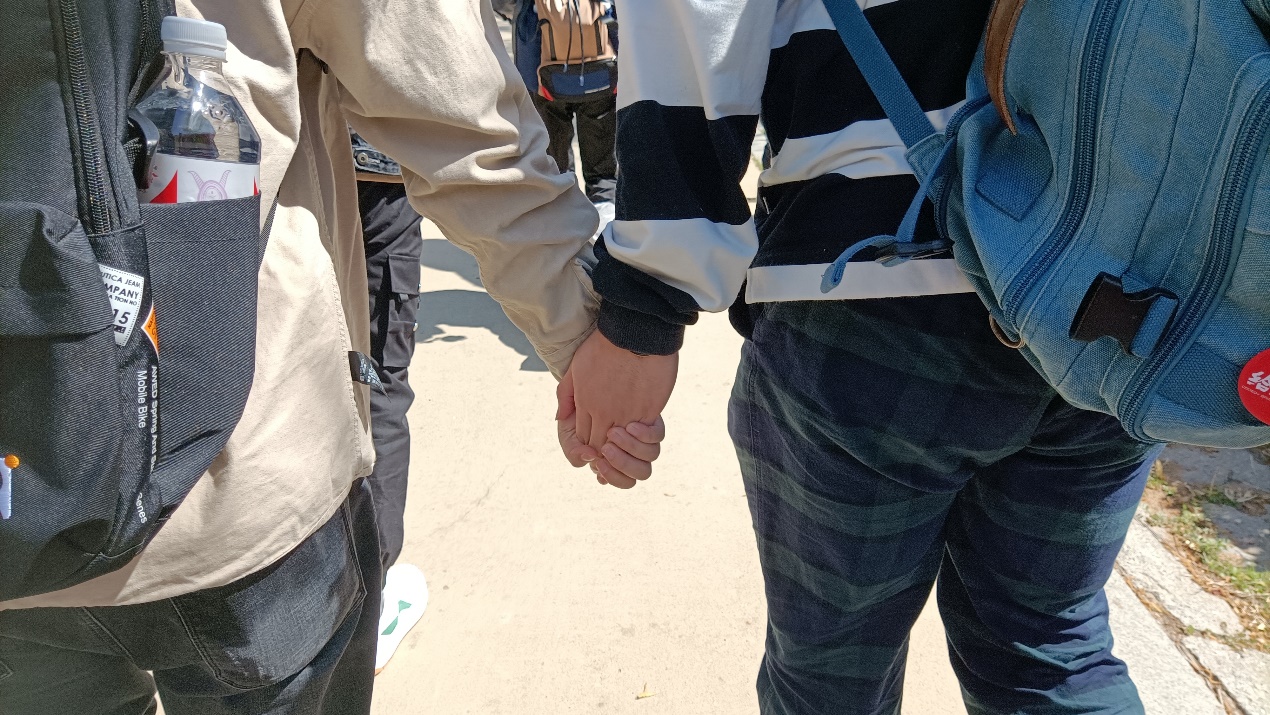 但他一直坚持走在我们身边,保证每个人的安全。