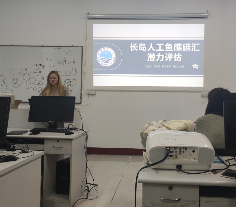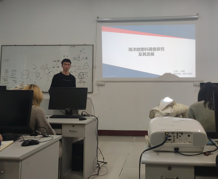接下来,3名研究生依次进行了工作汇报。梁辉同学介绍了海洋微塑料的相关研究及进展;孙仕梦同学汇报了长岛人工鱼礁附着生物固碳量的相关研究;徐安康分享了鱼类形态学指标的非接触测量的背景和方法。老师和同学们针对3位同学的汇报内容分享了自己的看法,并提出了相关建议。