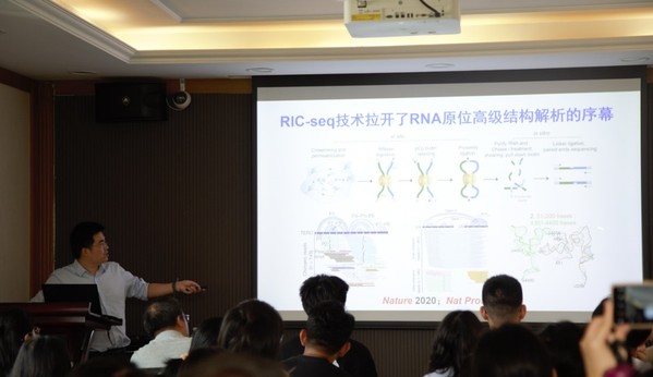 薛老师系统地介绍了课题组近几年的工作,生动地讲解了uaRNA (promoter upstream antisense RNA,启动子RNA)eRNA (enhancer RNA,增强子RNA)的互作机制,以及多种RNA原位构象测序技术(RIC-seqvRIC-seqCRIC-seqLACE-seq等)的原理和应用,在构建高分辨率增强子-启动子RNA互作图谱、预测病毒结构等方面做出详实的解读。报告由高珊教授主持,大批师生积极参会。薛老师以科学严谨的研究态度和幽默近人的报告风格吸引着现场的师生,大家围绕报告内容、技术的应用等方面进行了热烈的讨论。这次交流不仅开阔了师生的视野,也拓宽了大家的科研思维模式