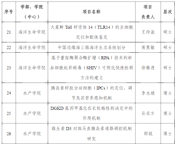 根据《中央高校基本科研业务费专项资金中国海洋大学项目及资金管理办法(修订)》(海大字〔201627号)和《关于申报2021年中国海洋大学研究生自主科研项目的通知》(研院字〔202156号),经个人申请、研究生院审查、专家评审等环节,本年度研究室同学获得项目情况如下: